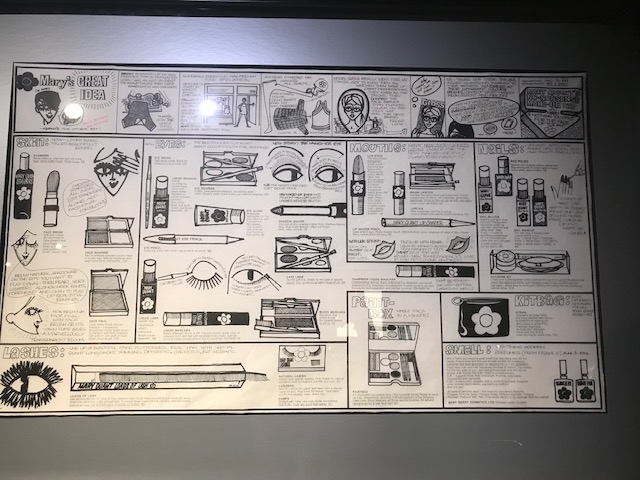 Third stop was an exhibition I wanted to go to! The Fashion and Textiles museum in Bermondsey. Although I am obviously studying Graphic Design I have always had a LOVE for sixties fashion! The colours, the styles, the way at the time the youth rebelled against the old and welcomed new change in! the music, the girl models at the time who made the scene relevant and hip and the general atmosphere! The exhibition was great! – It centered around the fashion of Mary Quant and the interior styles of Terence Conran. I found a lot of Graphic Design influence here from posters used at the time, packaging for Mary Quants makeup range, brochures and catalogues used, sketches used in layouts for fashion magazines… there was a lot to photograph that I could use as inspiration for future projects or assignments!