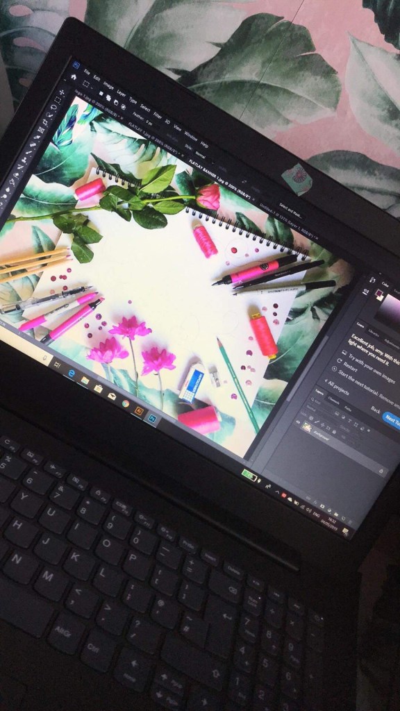 From looking on the internet and researching into how I could do a logo for the banner on my page I have decided to create and photograph a flatlay piece. I wanted it to convey “pink” but also to communicate art and design.