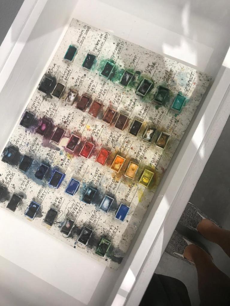 He does all his illustrations using ink pens.. if he goes wrong with his drawings he pastes pieces of paper over the original and starts again. He uses a lightbox to trace out his original drawings and then he layers them up to make changes or add further illustrations onto it.