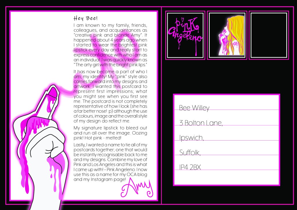 Postcard 1 (the back) 23rd Oct 2019 Related Published by Amy Moore Creativity is nothing but a mind set free. View all posts by Amy Moore