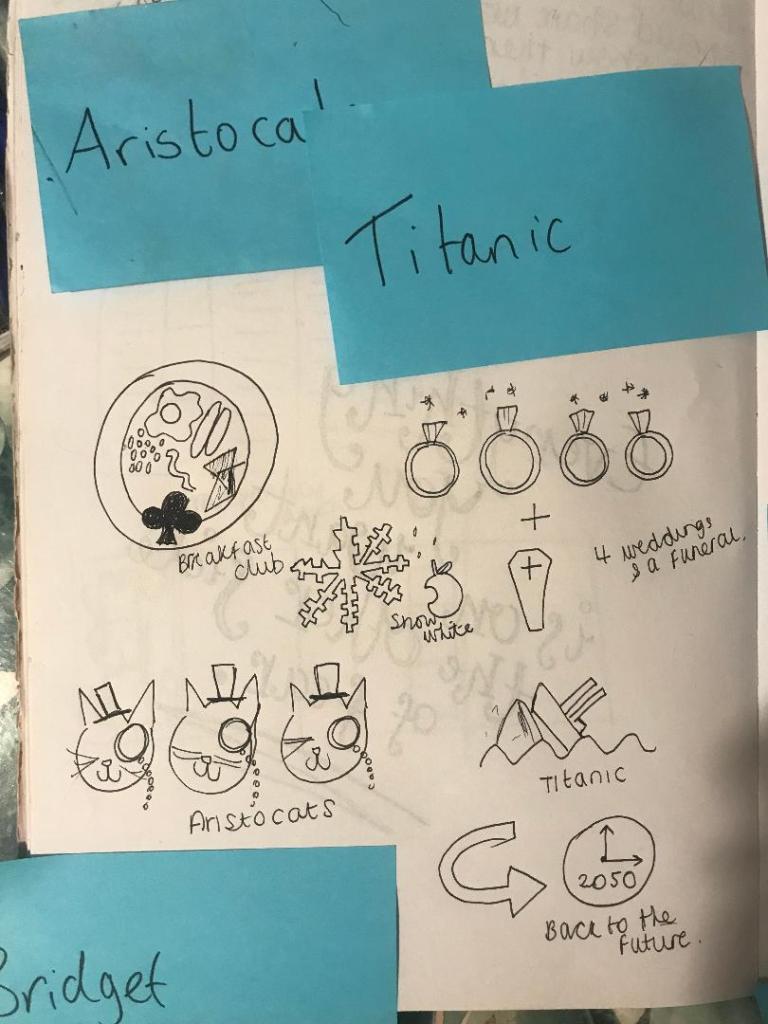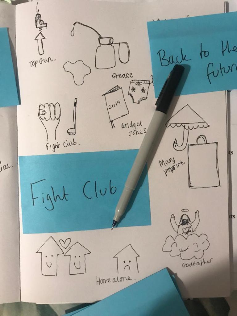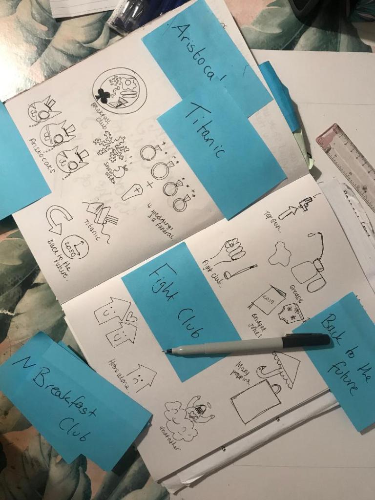 I asked my friend to write down on post-it notes names of films for me to do some sketches for.