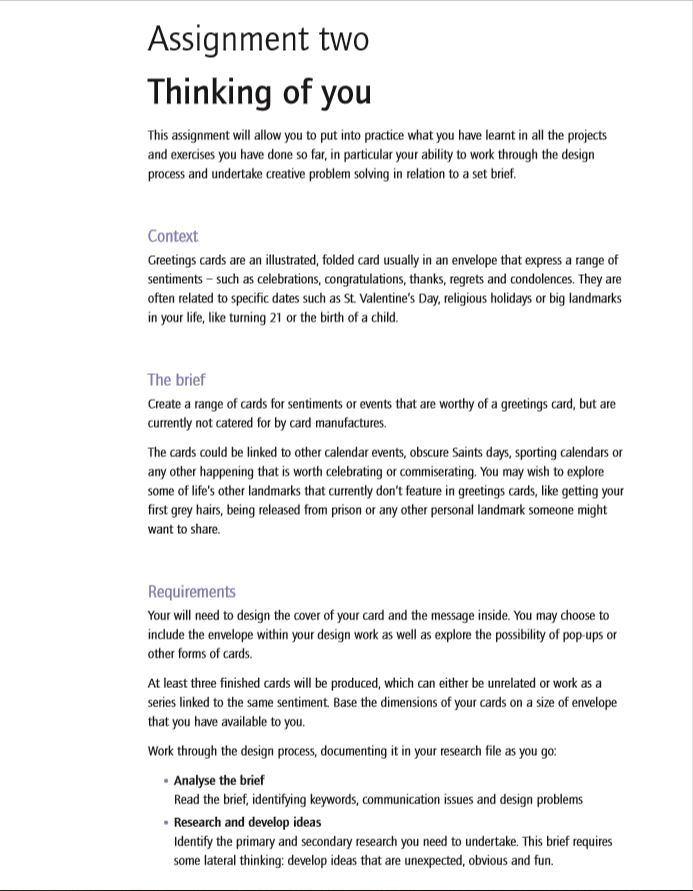From first look at this brief it reminded me very much of Assignment 1 where I had to design postcards to show who I am. It is a very open brief once again and allows for a lot of creativity. There were so many directions I could go down with this assignment and so many calendar dates/ events I could explore to create a range of greetings cards for!