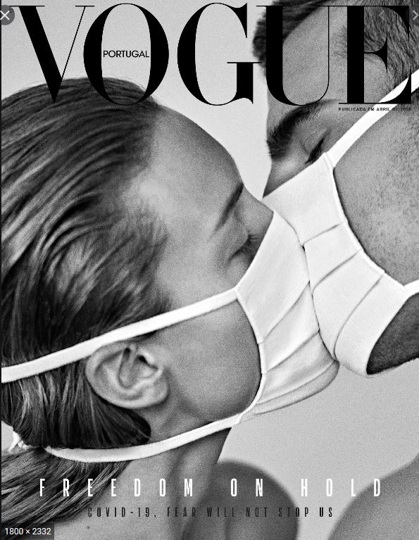 I had an idea of virtual kisses in my head and the vision of someone wearing a face mask with bright pink lips drawn on the front of them.. (pink obviously is my signature colour!) This is possibly inspired subconsciously in my mind by Vogue Portugal’s April cover I love which shows a model couple kissing through face masks. I love the concept behind it! “Freedom on hold” so much so that I actually ordered a copy of the magazine and a commemorative print to frame in my house! (as weird as that might sound!) It also reminds me a lot of the CK one advert from 2003 that I also have a print of in my house!