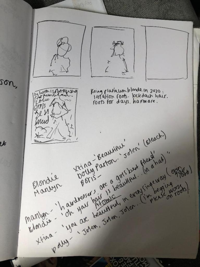 With this idea in mind I scoured google for some images of Marilyn Monroe for some inspiration… Just to see where I could go with it! I absolutely love Marilyn Monroe – she was an icon! I am always aware though that her image has been massively over used and dare I say over abused! – There are a lot of cheesy, tacky designs out there with her face on and obviously I would not want my designs to fall into that category! However, this photo I found gives me inspiration for progressing the idea further. In this image she has long hair whereas it is usually short – again, representative of the fact no one can get to a hairdressers! I have a vision of her rolling her eyes and holding a can of dry shampoo (root cover up) just for the funny factor! The perfect heading seems like it could be “Hairdressers are a girl’s best friend” it would be the ideal card to send to your hairdresser in this time of need or with the message “I’m rooting for you” inside just makes it a supportive card to send to that desperate blonde in your life!