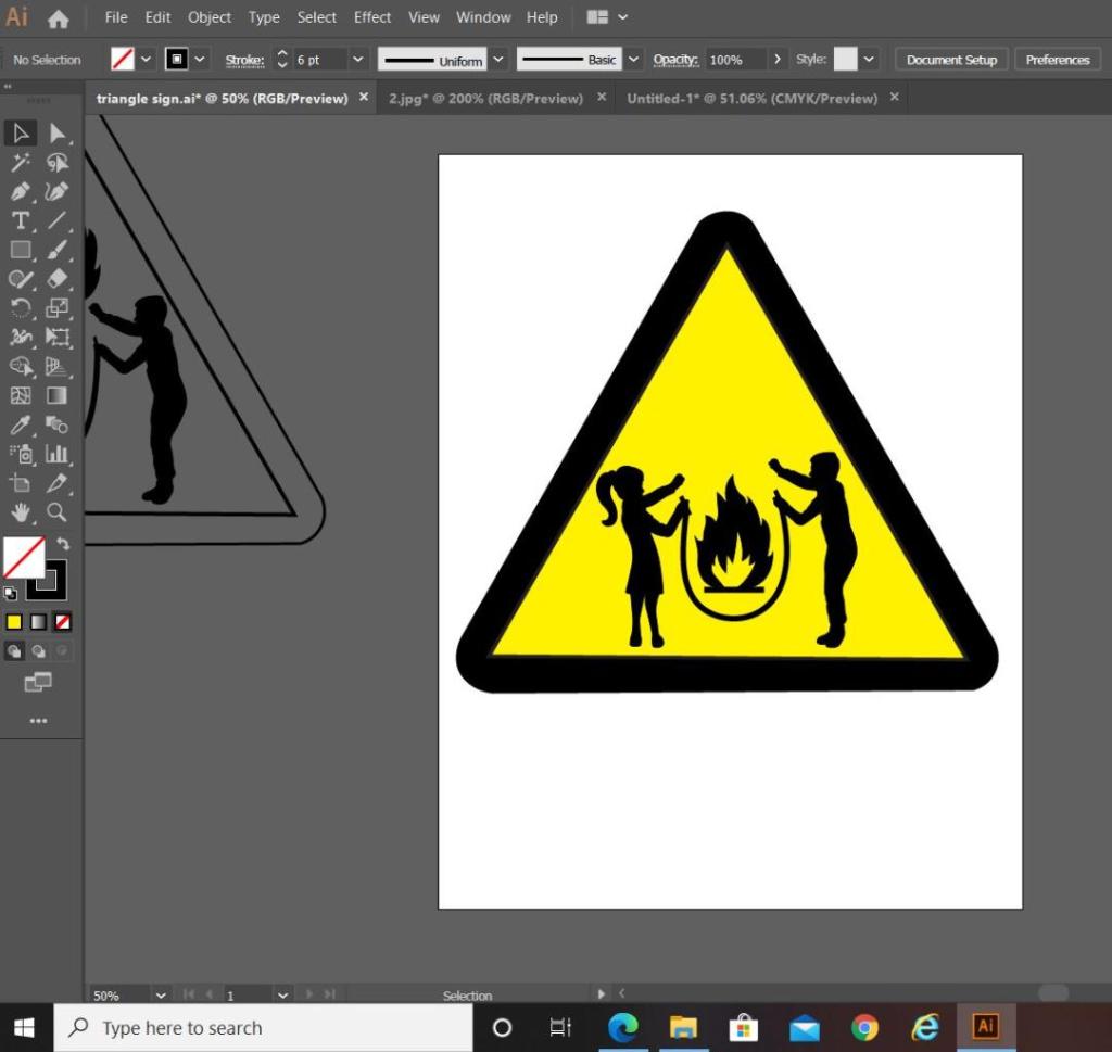I then went on to draw the sign to put the symbol inside. The sign is a triangle warning sign, but as soon as I placed the symbol into the triangle shape I realised that I had a potential issue…