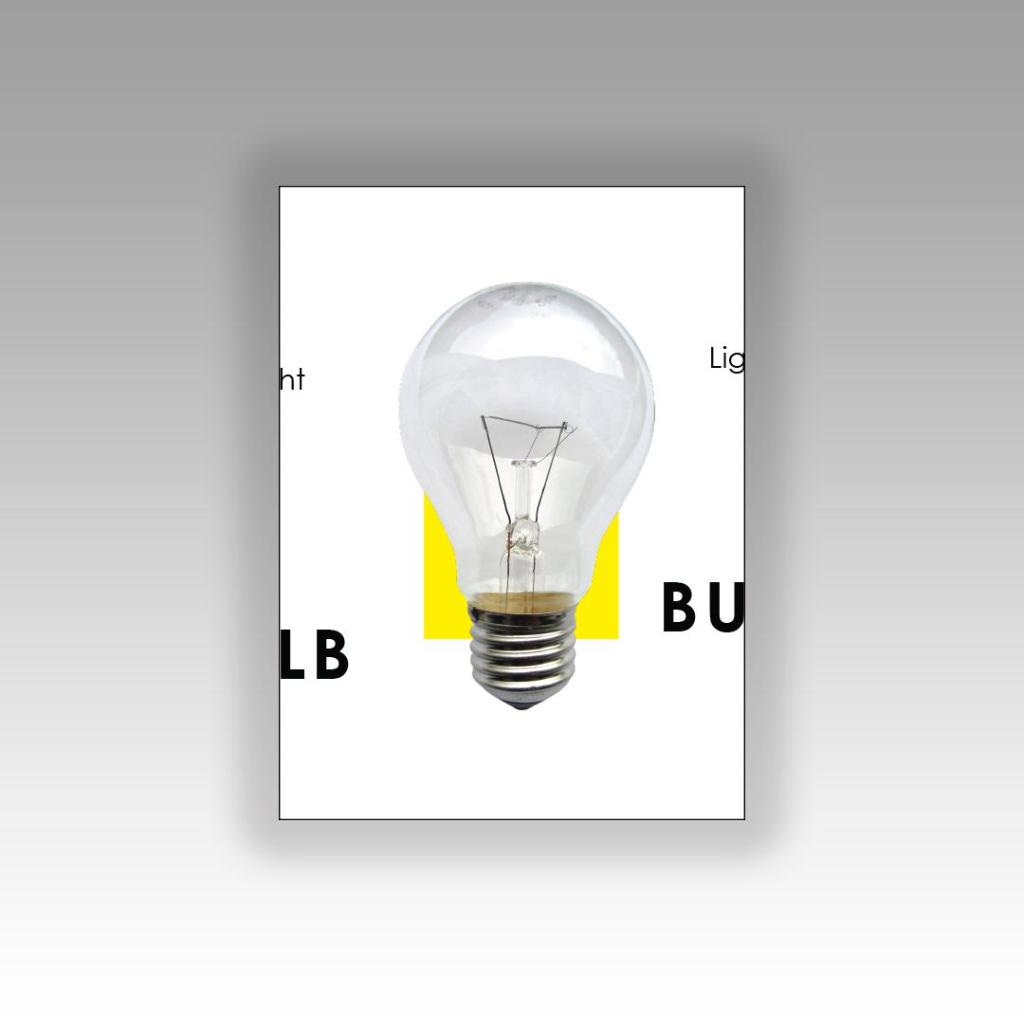 This above design is my favourite. It was a completely accidental piece – I ended up cutting my text in half by accident but really liked how it turned out. I wanted the text to speak rather than the image so I used parts of the lightbulb that possibly would not be identifiable if they appeared on this piece alone. Going back to Chipp Kidd and the “apple” lesson; a photo of an apple does not need “apple” written next to it. A light bulb does not need “lightbulb” written next to it to identify what it is, this is why I have only chosen parts of the bulb where you would have to guess what it is – the text speaks for itself. I wrote “light” in small at the top to emphasise light and lightness – plus I really liked the use of negative space in this design. The contrast between dark, big and bold text next to the small, light text draws more attention to the design. I incorporated the block colour into the letter L.