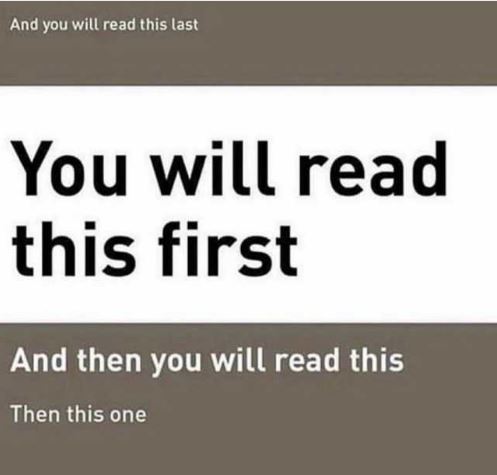 The human brain and eye are very clever things! The brain will try and fill a space or gaps where there is any, (negative space) and the eye will only see things in a particular way… the most attention seeking element first followed by any least important information.