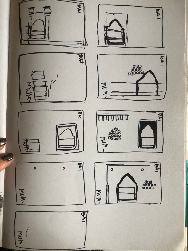 Again, I tried to pick out important features from the building which I could include in an abstract way on my design. I didn’t want to draw the building as it is on the cover because that would not be portraying it in an abstract light. If I picked out key features and then simplified the design I could place key elements of the building on my cover.