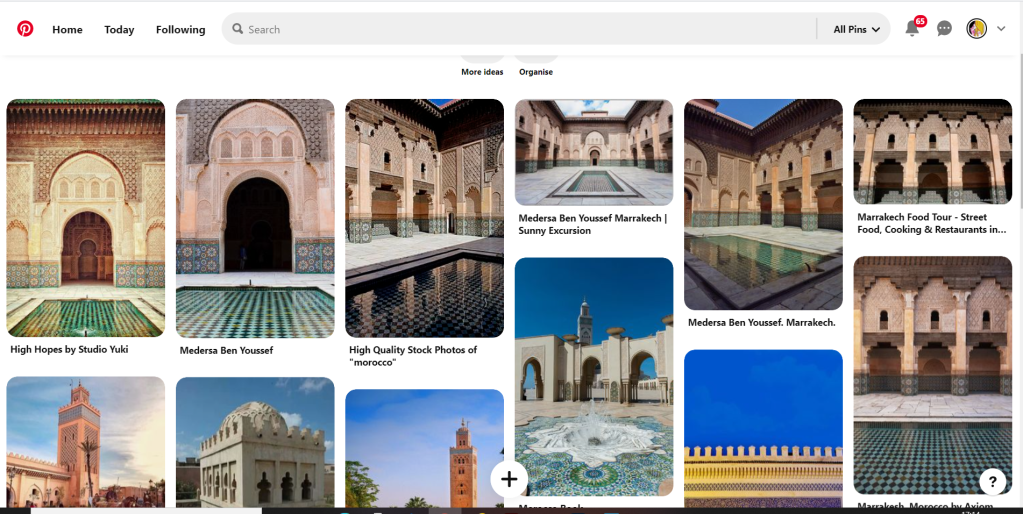 I started off the same as usual by searching Pinterest for some inspiration. What I found matched the idea I had in my head. The colours were very warm. A lot of terracotta orange appears on the stonework of the buildings. The buildings all look like temples with the arched shapes doors and windows and the intricate patterned tiles and designs that feature on the buildings. I knew I wanted to include the arch designs and some of the intricate tile patterns. The buildings all look luxurious and rich. The ideal colour to represent this is purple.