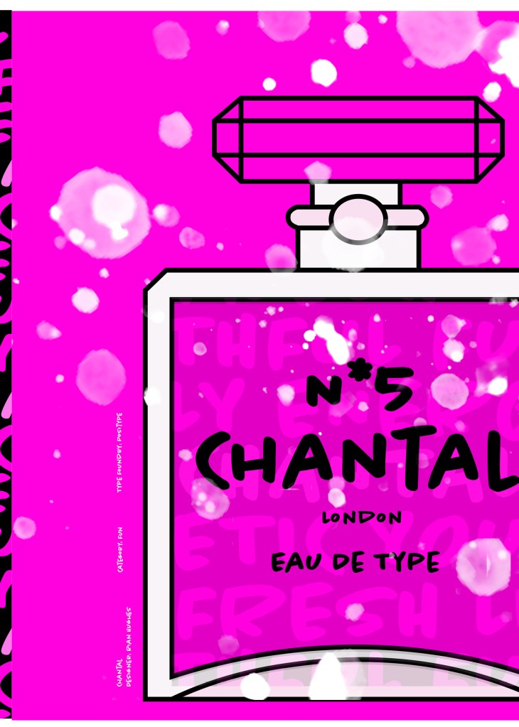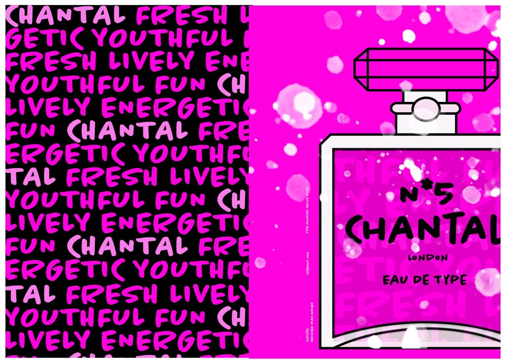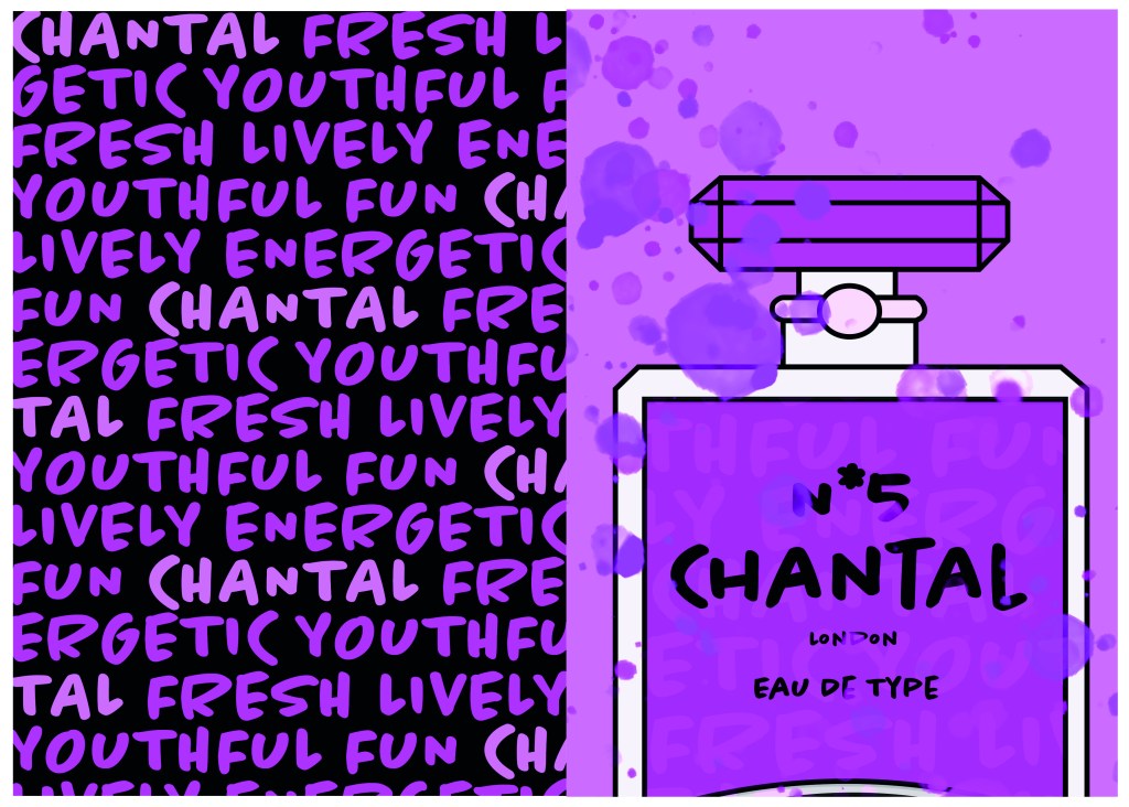 From first sight looking at Chantal it instantly made me think of a Louis Vuitton design that was used on handbags a few years back and also on some of their shop displays, I thought I could recreate a similar thing for my design. As well as reminding me of the Louis Vuitton designs it also reminded me of some Chanel bottle designs that I have seen and pinned on Pinterest, luckily Chantal is a play on words with Chanel so I chose to do a fun, gimmicky play on Chanel with Chantal!