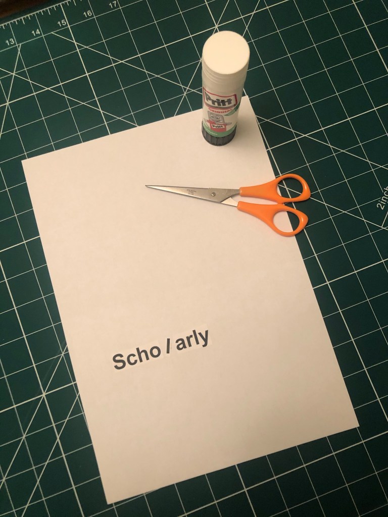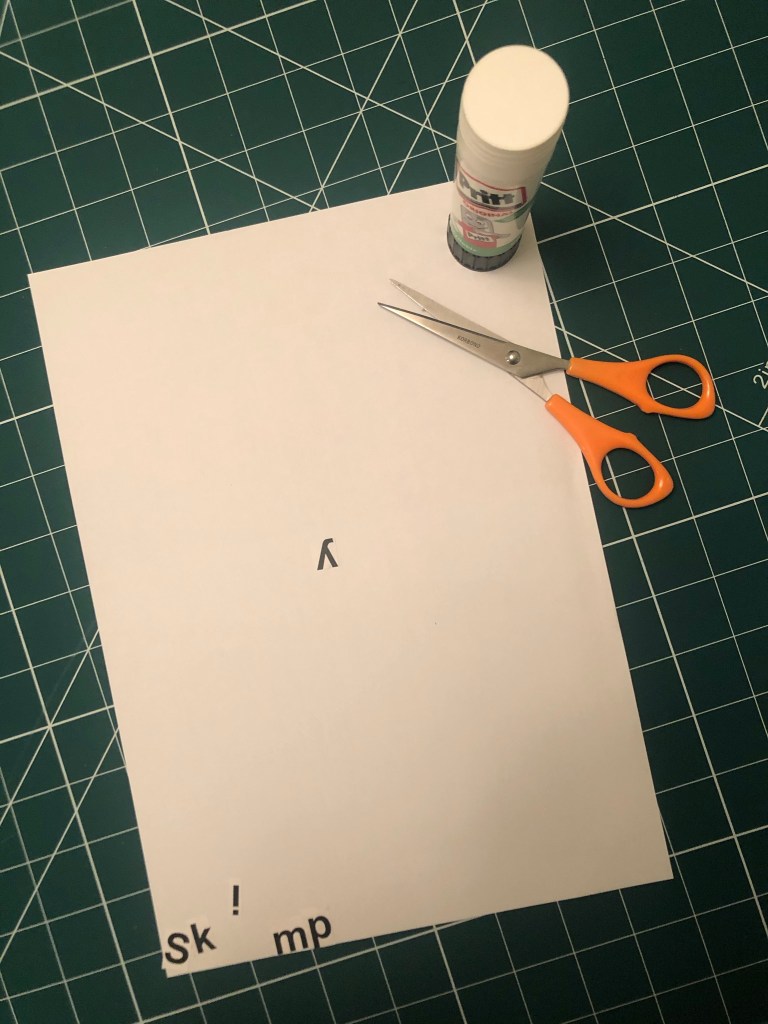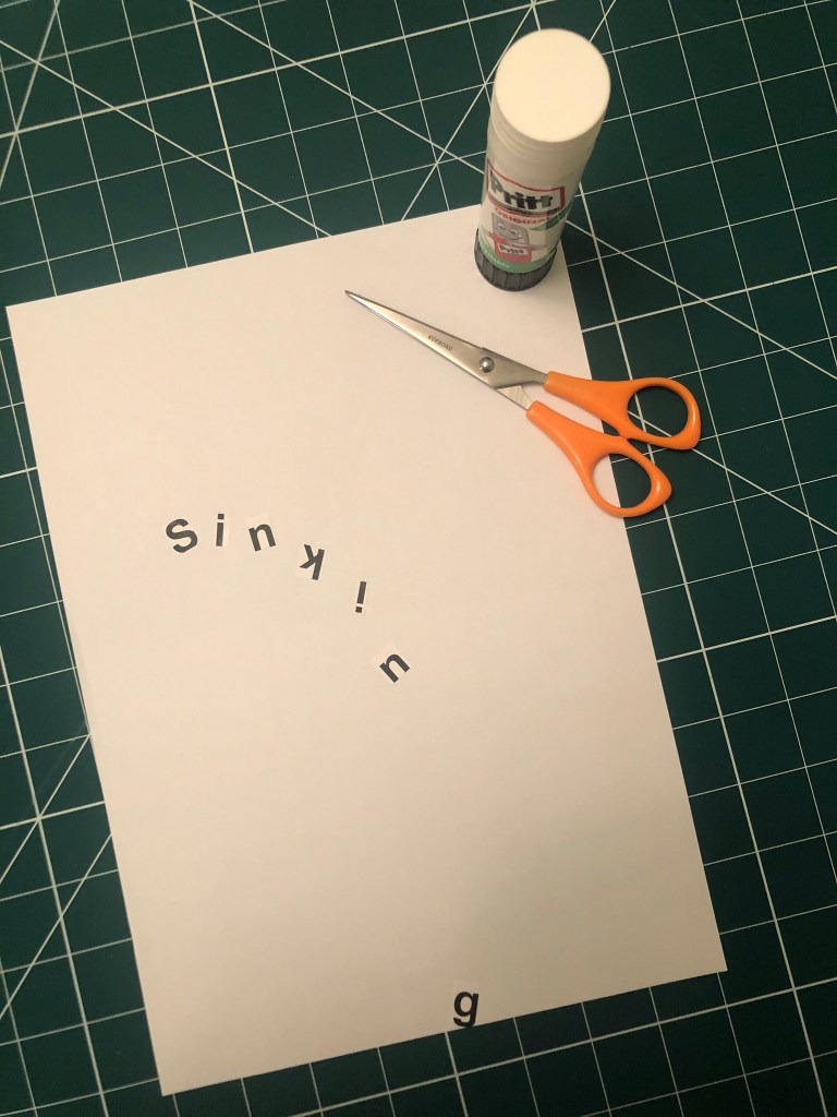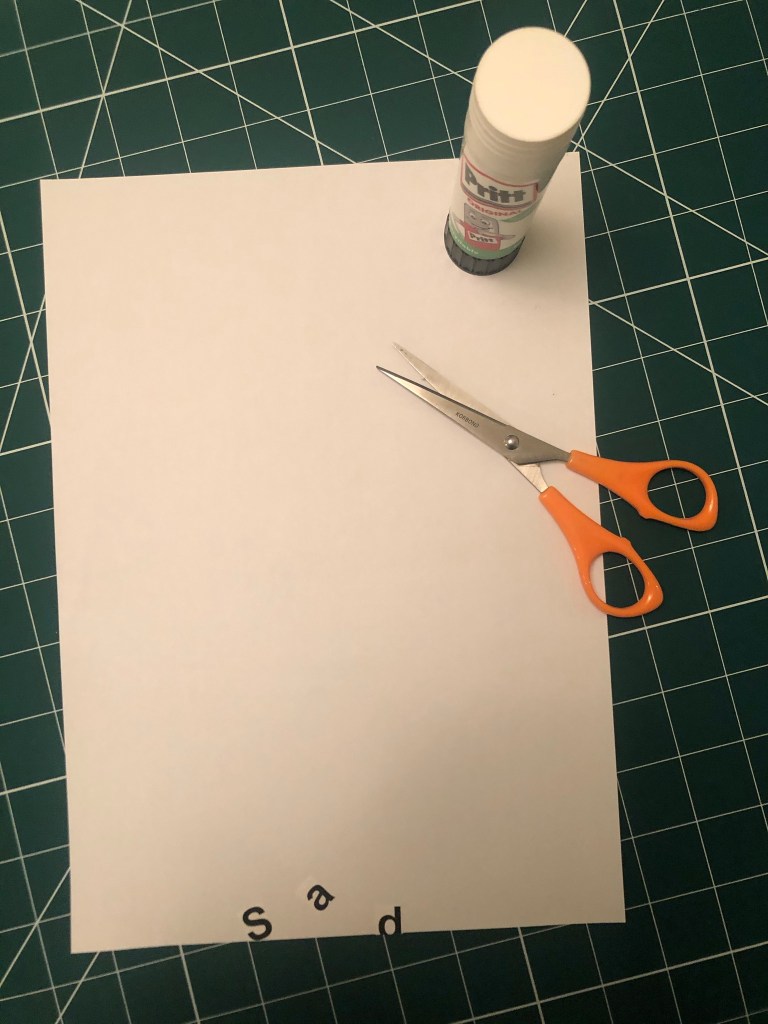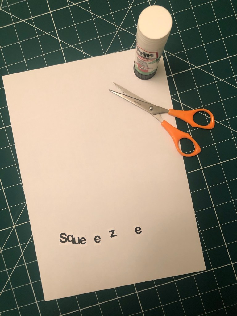 I printed out my sheets using Helvetica and then cut the words up to create my visuals. I used the whole A4 sheet as my blank canvas, I wanted to make good use of negative space and really think about where I was going to place my words within the space.