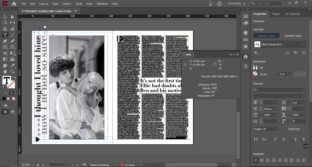 I started off with the short story “I thought I loved him, now I’m not so sure”. This is the first of 3 versions I have done for this article; this version is for a women’s weekly gossip style magazine.