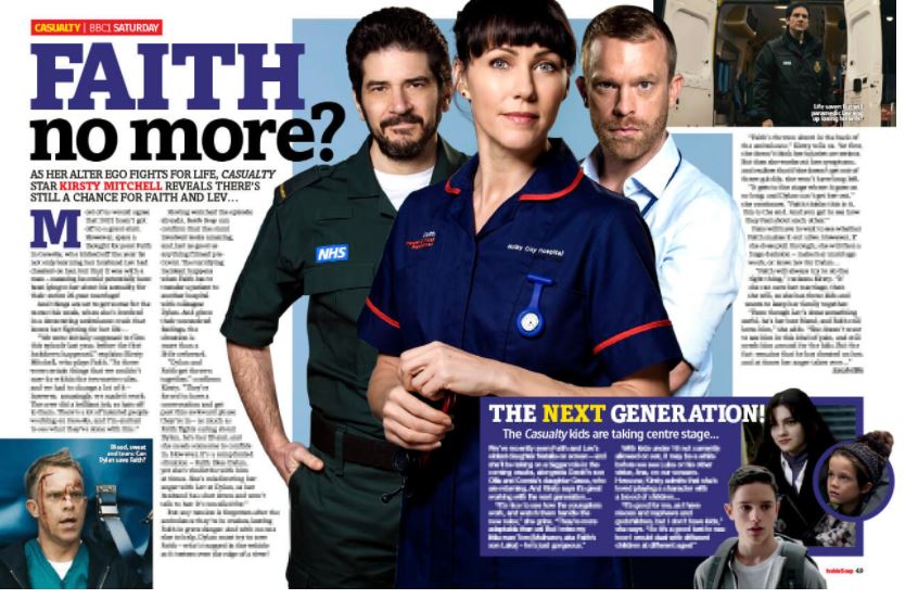I decided to base my design around this article relating to Casualty. I liked the layout; It uses limited colours, bold typefaces, catchy headlines and everything is aligned to a grid. The image in the middle brings the whole layout together, the image is the focal point and everything else sits flush around it.
