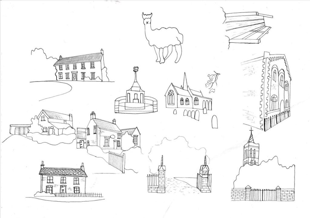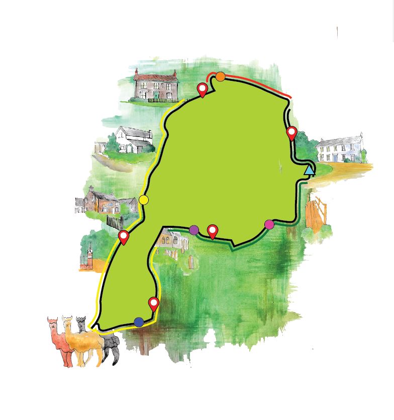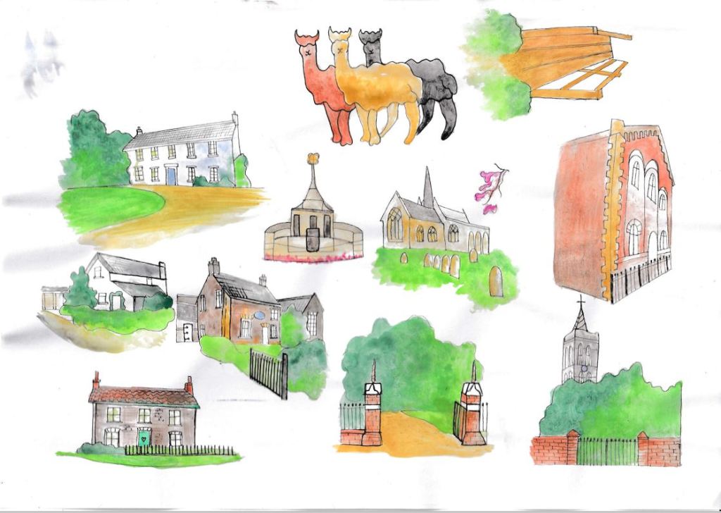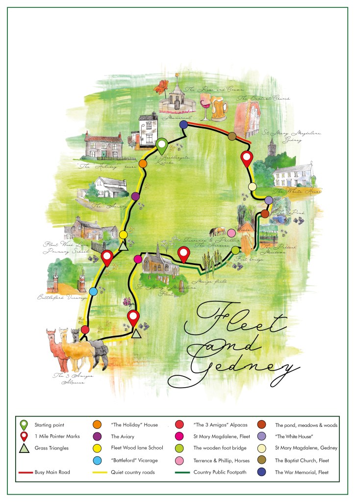 It is a 5 mile round walk, starting from our house; we document many building on the way round – some are completely irrelevant to everyone else but are significant to us as well as some of the local wildlife like the 3 friendly Alpacas we go to see!