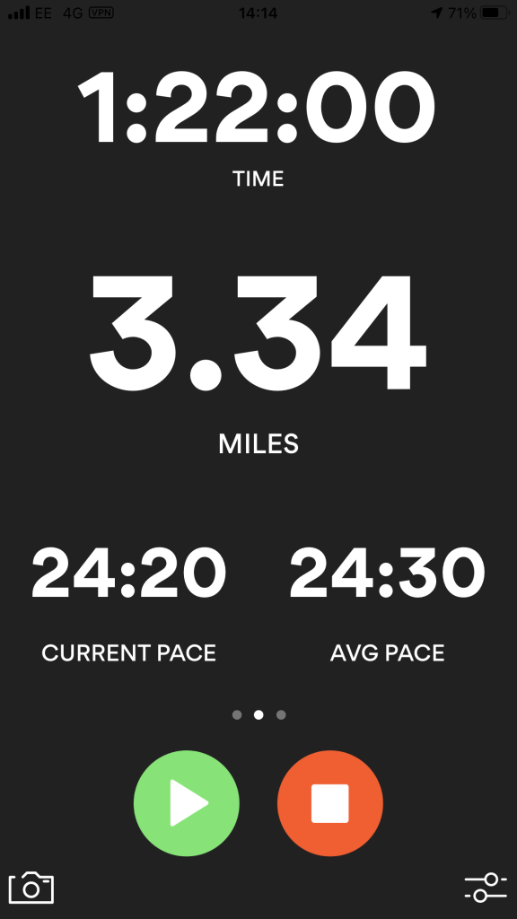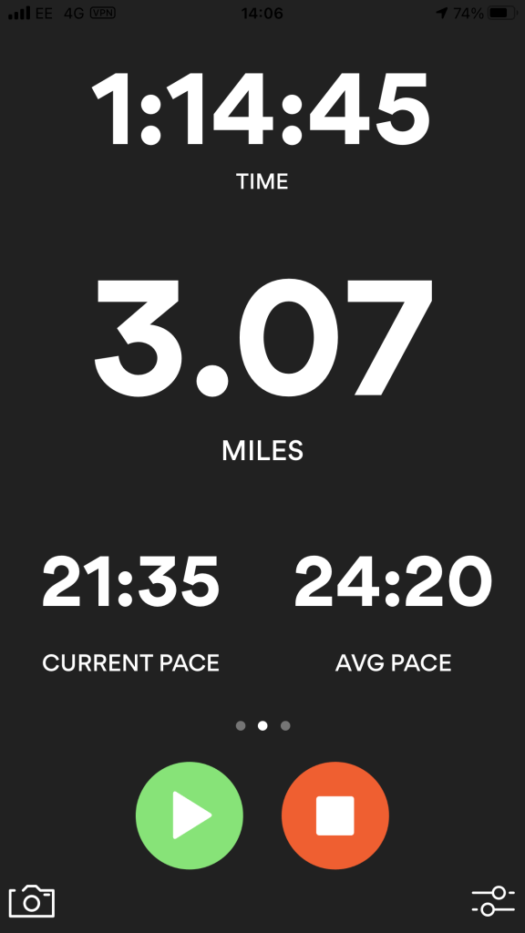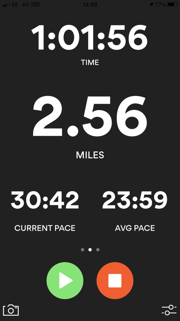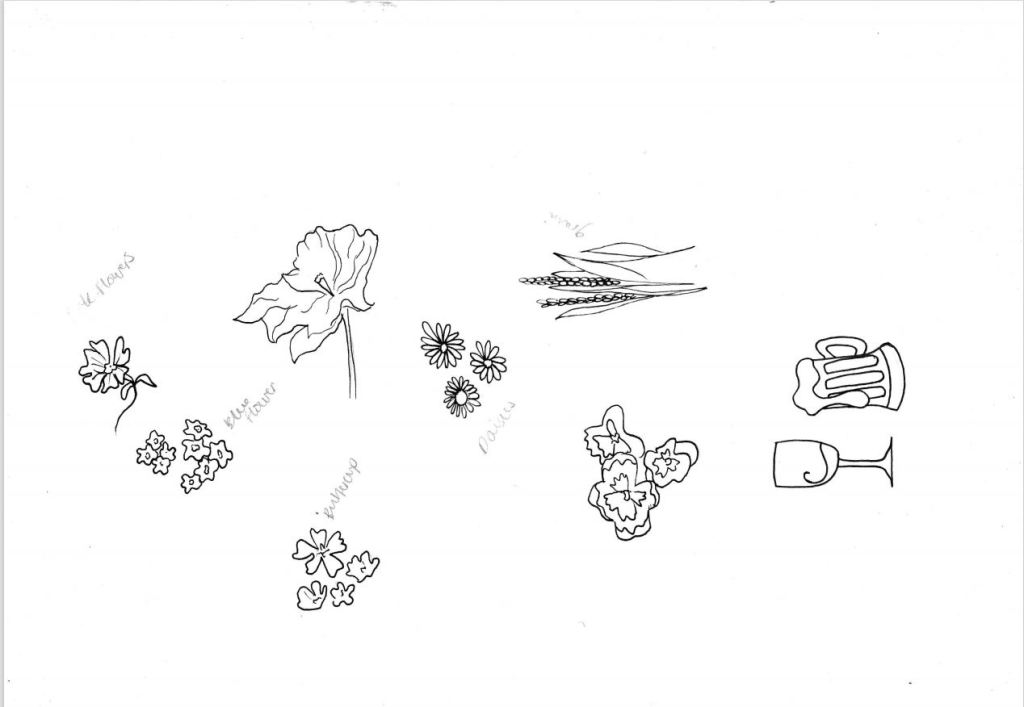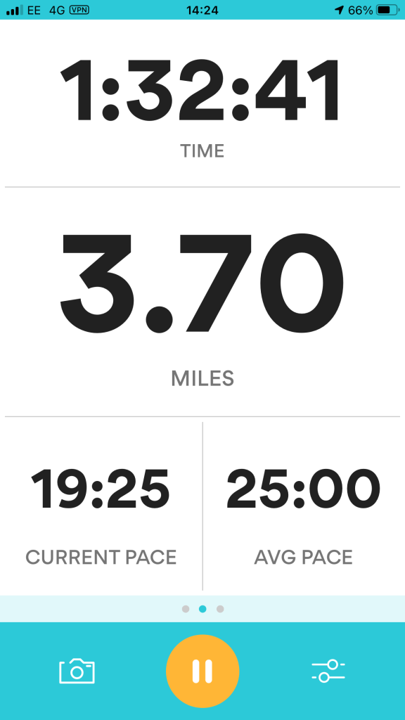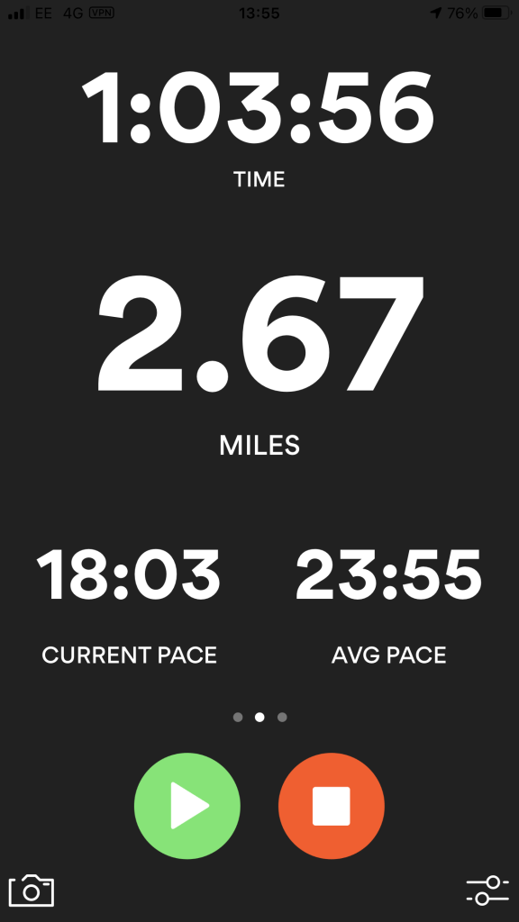 I wanted to do my design in the style of Heather Gatley and knew that I wanted to draw and paint some of the POI of the route and dot them around the outside of the map. I had the Runkeeper app playing in the background of our walk to map the miles and this also gave me the idea for the outline shape of my map, I also looked on Google aerial view to see what colours all the fields were looking down at the route;