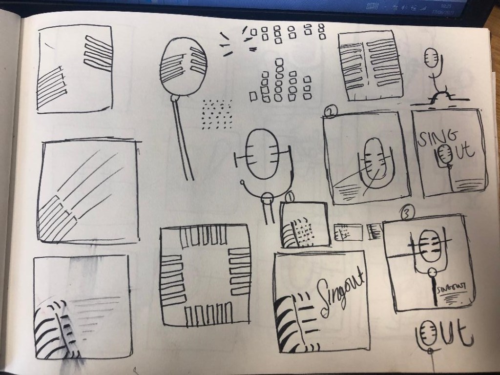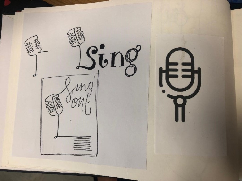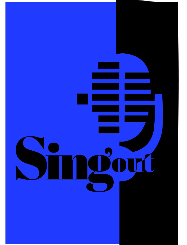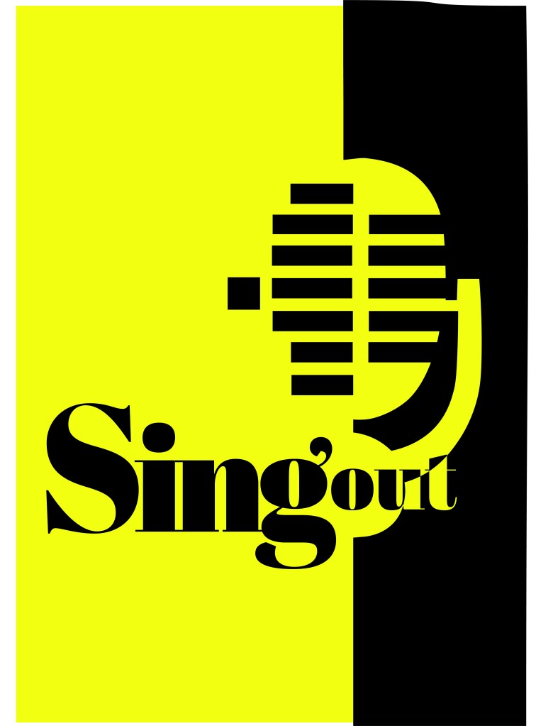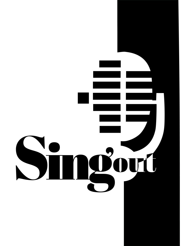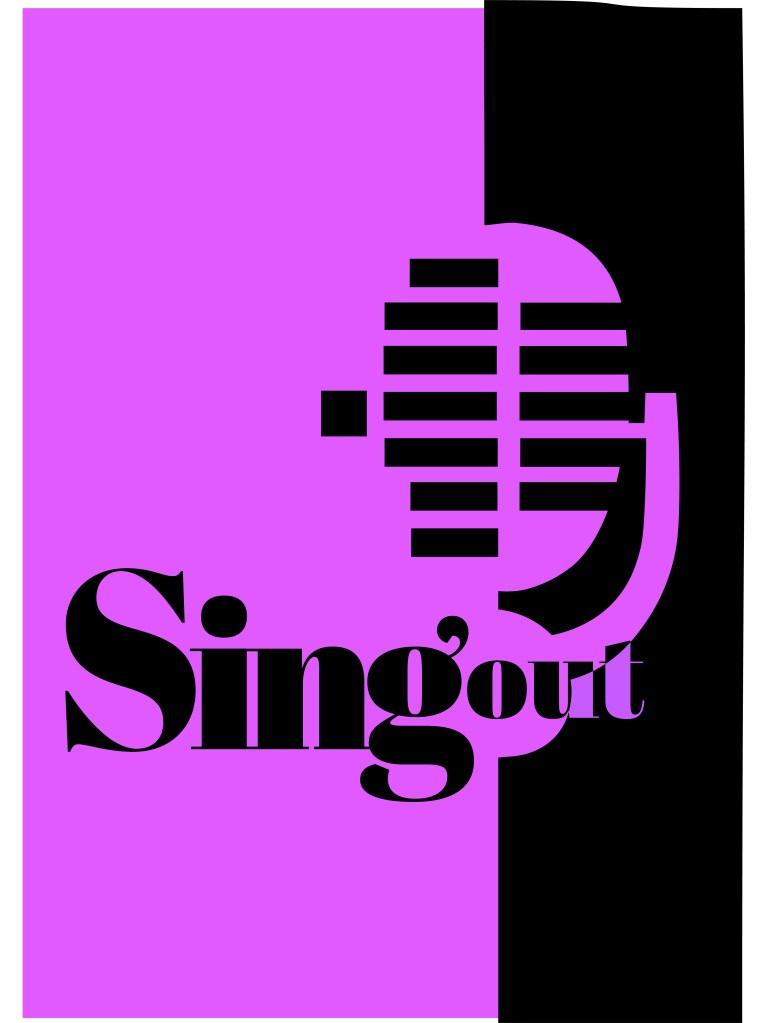 I messed around the most with how to display “Singout” – all one word! This was a challenge also! I decided to make”Singout” 2 different sizes but still one word for 2 reasons; 1) for contrast 2) to separate the word up but still keep it as one word. I placed the “o” in “out” in the centre of the microphone on some of the layouts as I felt it would make it look part of the design, however it changing the colours in “out” looked too confusing and was not legible at all.