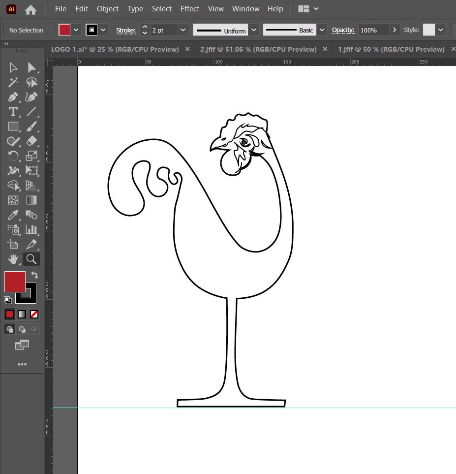 I found a vector drawing on Google and decided to trace around the face so that I had an accurate Hen drawing. She looked much better! I also fattened her up and made her tail look better. I originally drew her tail (or the spills out of the glass) with 3 droplets but I noticed when I zoomed right out on screen, it looked a little blurry and lost and you could not work out what it was. I deleted that out and kept to the 2. (see the image below that I have circled!)