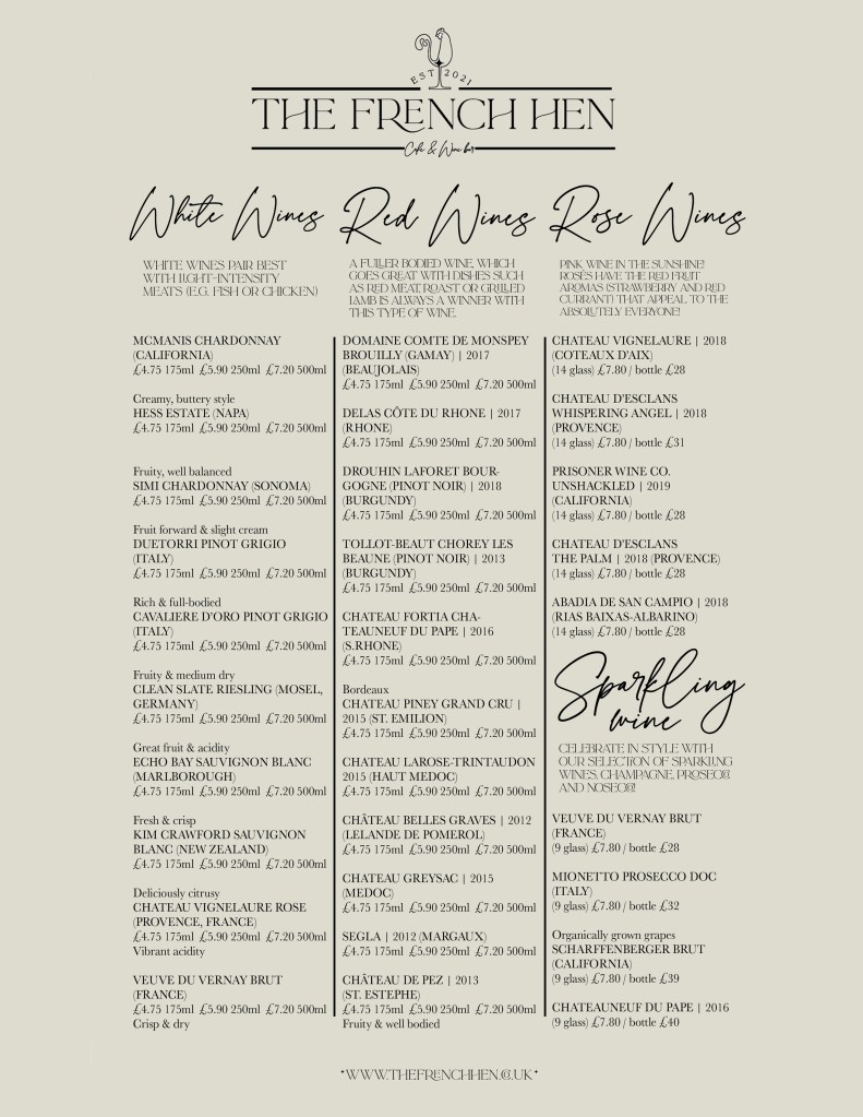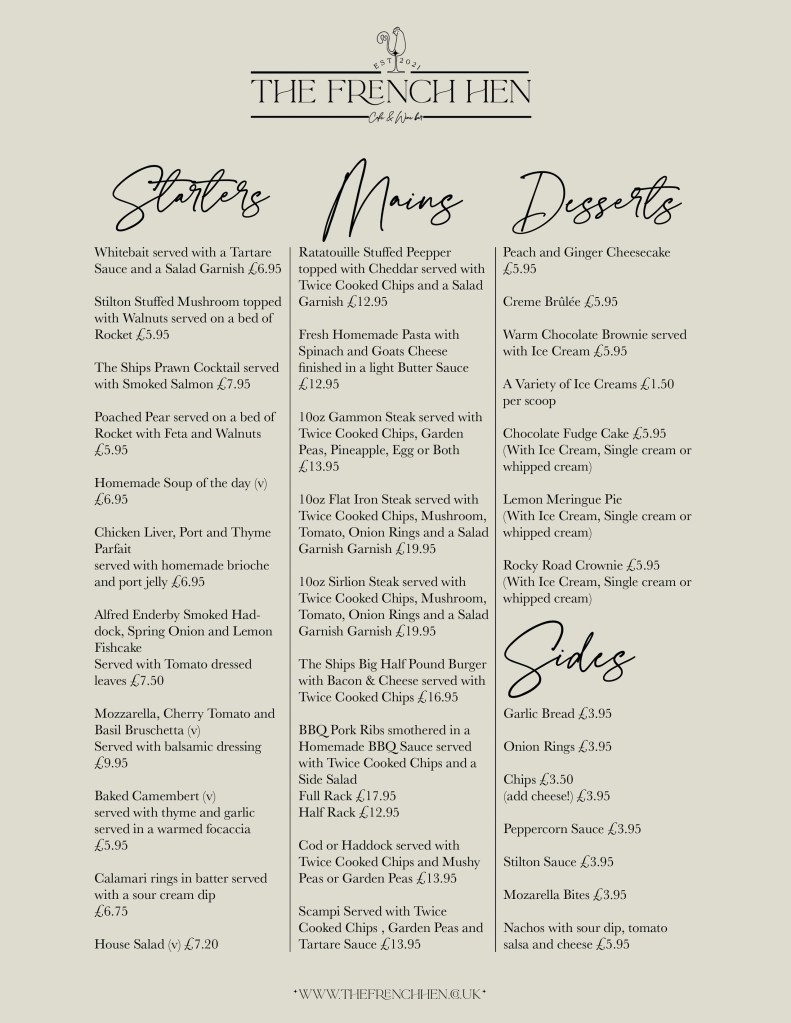 I had the perfect logo at this point for The French Hen and now I needed to create some menus to go in the establishment. I had the idea of quite a plain and simple black and white menu using the La Luxe script typeface to make it look fancy.