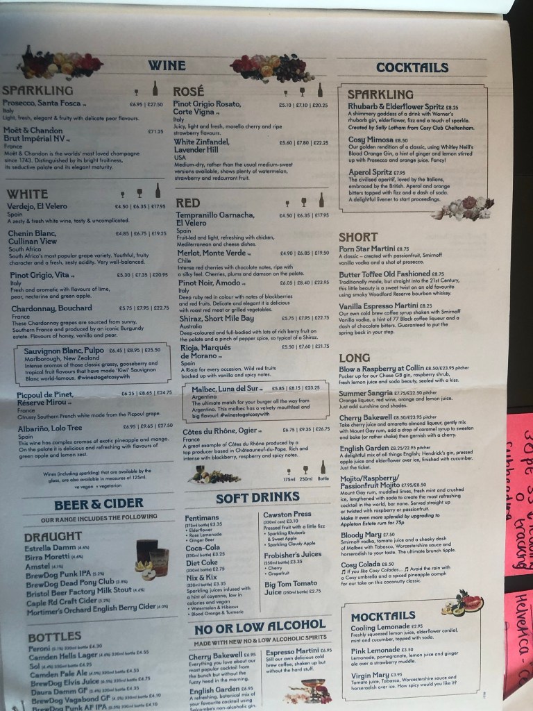 I decided to do the pages an off-white colour, in my head I had an idea of it being like the fancy, high quality cartridge paper menus that some restaurants use. Another reason is that it is easier to read. I used Baskerville for the typeface for the main body copy because it is more legible than La Luxe. Baskerville was designed to make printed books look beautiful so it would work well in my menu.