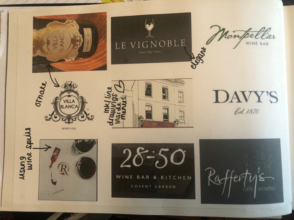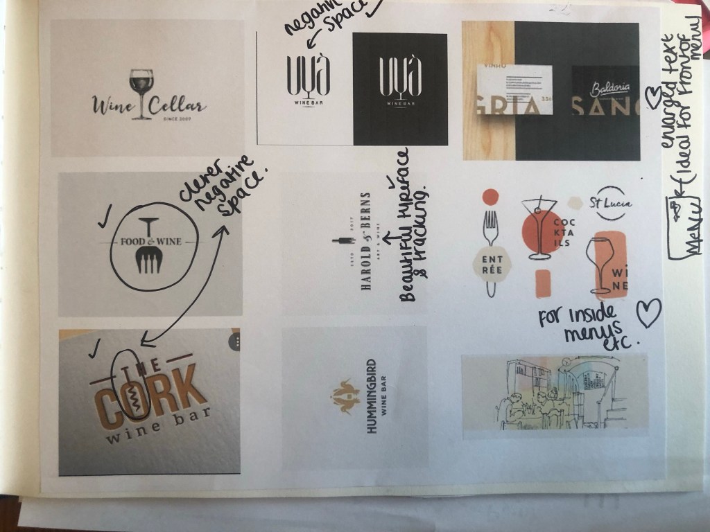From looking at examples of Wine bar logos I came to my own conclusion that the classiest and most beautiful logs were in Black and white, were kept simple and used beautiful typography to do all the talking.