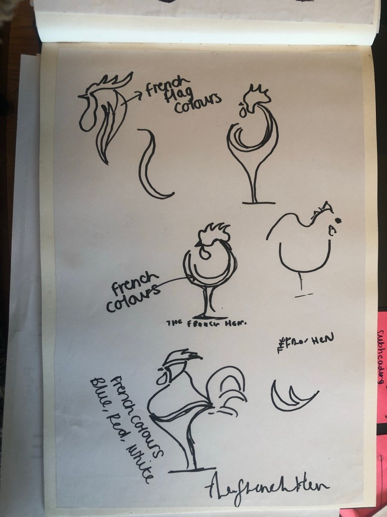 I narrowed my sketches down to some final ideas; using Chris’s idea with the French colours, I put my own take on it!