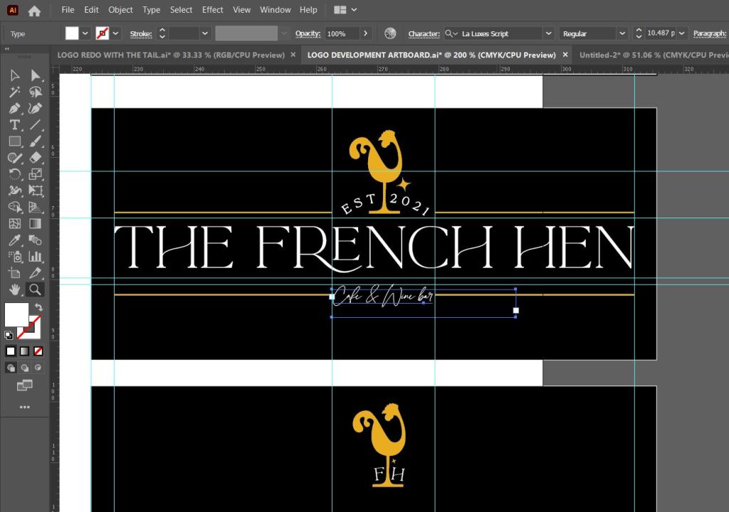 I decided to use La Luxe Serif for the main logo “The French Hen” and to use La Luxe Script for something a little more fancy inside the menus.