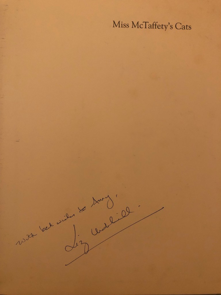 My Grandma bought me this book, The book was released in 1993 and she met the author and had the book signed for me. I was 6 or 7 at the time.. I think she went on a trip with one of her women’s clubs and this author obviously did a talk about her book. I remember her gifting me the book and telling me how the author had signed it especially for me which instantly made the book very personal and special. It is an absolutely stunning book. The pages are beautifully illustrated as all the books I have written about are but this one has cut out pages which then when you turn the page link to the next scene; For example one page shows the inside of the big house and Miss McTaffety looking out the cut out window to the outside and on the next page it shows the cut out window with people on the outside looking inside to see Miss McTaffety looking out. It is cleverly pieced together! The pages are printed on really high quality glossy thick paper too. It is a story of a sad, lonely old lady who lives alone in a big, empty house. No-one wants to talk to her and I think now as an adult I realise she had a bit of social anxiety!! – eventually she forces herself out the house to go and eat in a fish restaurant that she always liked the look of but never dare go in. The author portrays the character as very shy and nervous.. because she is so shy and nervous she cannot finish her meal sitting inside the restaurant, the restaurant chef gives her the food parcel to take home. On her route home she attracts the local stray cats who are tempted in by the smell of the fish. Miss McTaffety dishes out the remaining fish from her parcel to all the cats and as it turns out the cats never then go home or return to where they came from. Miss McTaffety houses all the cats in her big house and then becomes the affection of the people who live near her in town, she gets presents from people for the cats and visitors turn up at her door to talk to her and see the cats and in return she gains confidence and happiness. I always related to this story when I was younger as I was painfully shy and didn’t have a lot of friends…(When I was single I always joked with my Mum that I would end up like her!!). It was a firm favourite with me and my Mum and was read a lot over the years.