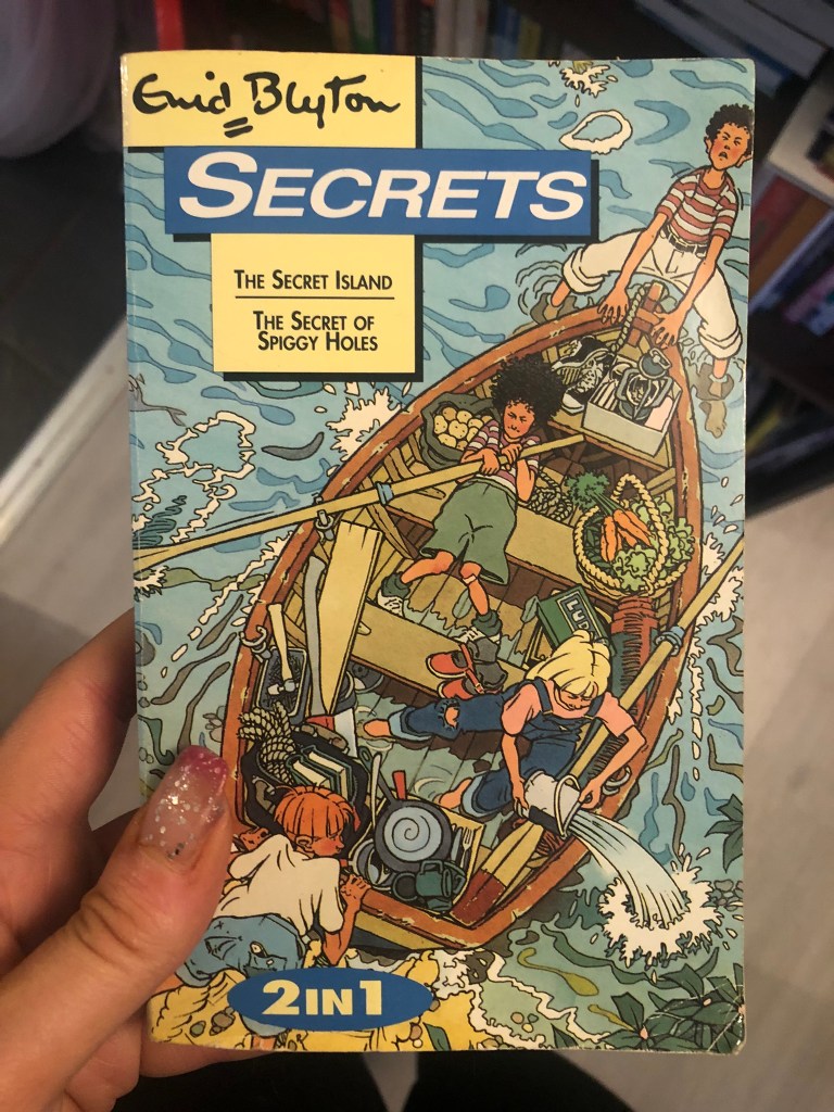 This was one of my favourite books when I was in my later years of primary school. The story of a group of children who leave home and make a home on a deserted island by a lake. As a young child it was exciting to read about a group of children the same age as me living by themselves and adapting to life on an island without any grown ups. They have to keep their own animals and sell their own produce as well which was something that you don’t think about as a young child! I remember my Mum bought this book for me from a book shop in Peterborough when we went for a day trip out on the train together. Mum did read a few pages at bedtime to me but this was a book I liked to indulge in myself and create an imagination in my own head of what the characters and the places looked like. The cover of this book was also exciting as it shows the children escaping on a rowing boat with all their food and possessions. The detail of the artwork in the cover really sets the narrative for what is happening in the story.