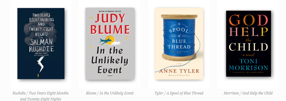 Her designs are also very varied; I cannot distinctly see a style she necessarily has and that can be recognized as her designs. She uses a mixture of illustration, photo manipulation and collage work in her designs. It also looks like she uses her own style of lettering to use on the titles such as the You cover. The only cover I am familiar with is the cover for Judy Blumes In the unlikely event which is one of her new adult novels. Some of her cover designs seem to be quite representative and “obvious” and more or less spell out what the book is about; such as Judy Blume (plane crash) and A spool of Blue thread (pictured as a spool of Blue thread).