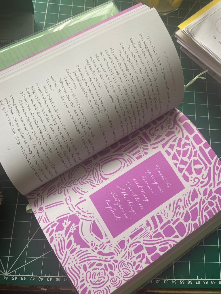 I knew as soon as I read this part of the brief that I wanted to find the illustrator or designer who designed the laser cut seasons series of books that I talked about earlier that I love! After doing some online research I found out that the illustrator is Kate Armstrong. I also found out that the series in which my Secret Garden book belongs is the last series she is doing! I just think the laser cut design is so beautiful and intricate! – the only issue is now that die cutting/laser cutting is quite popular in book design and isn’t really revolutionary or new anymore.