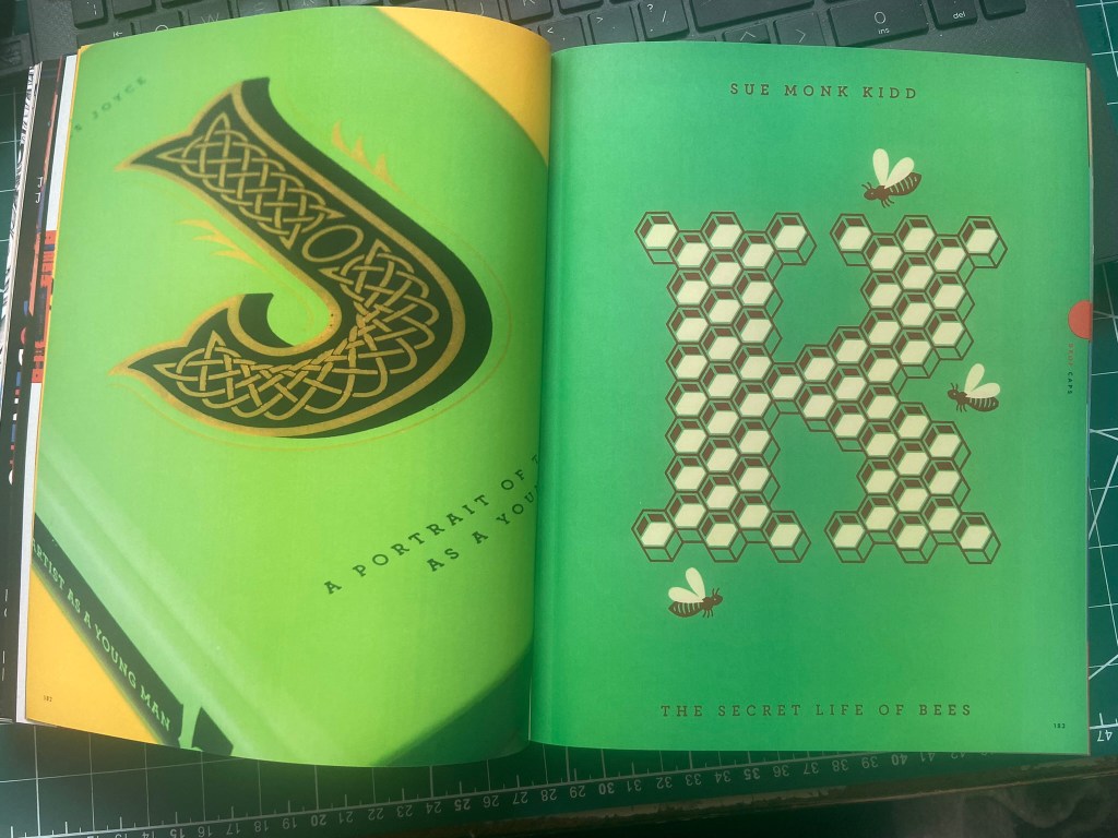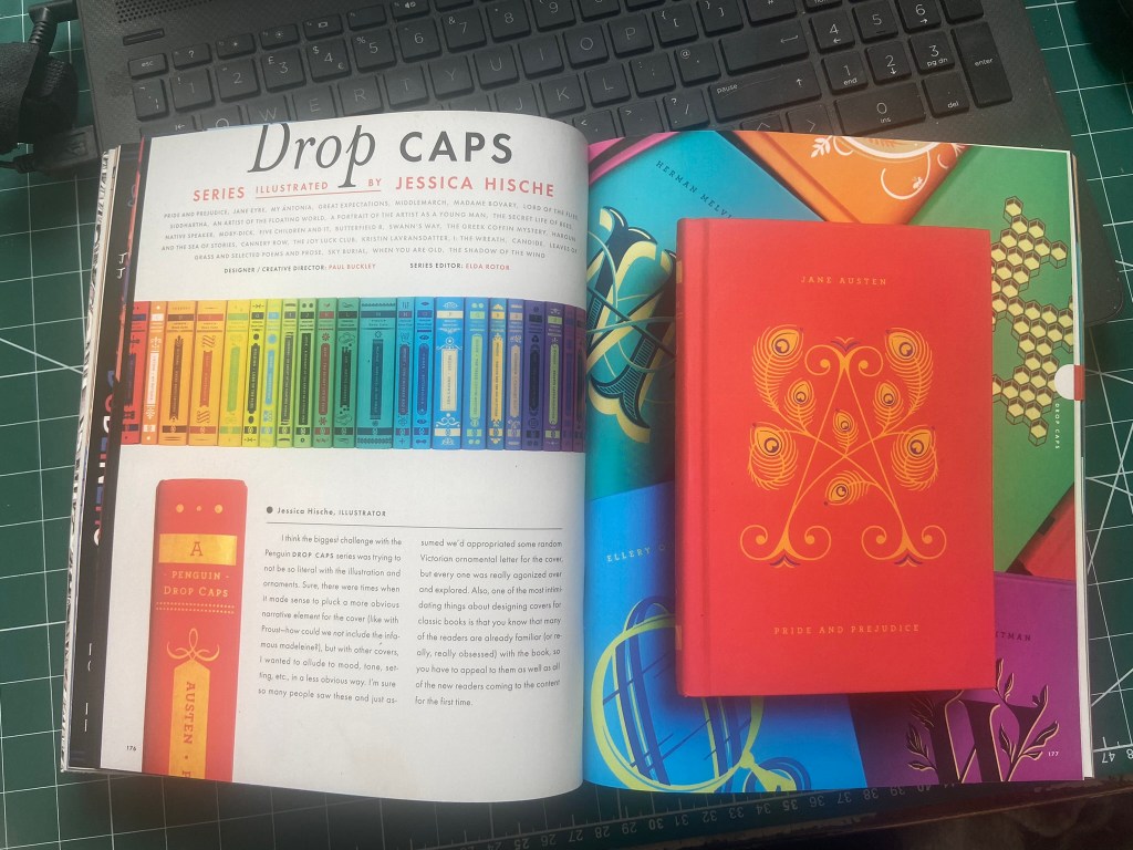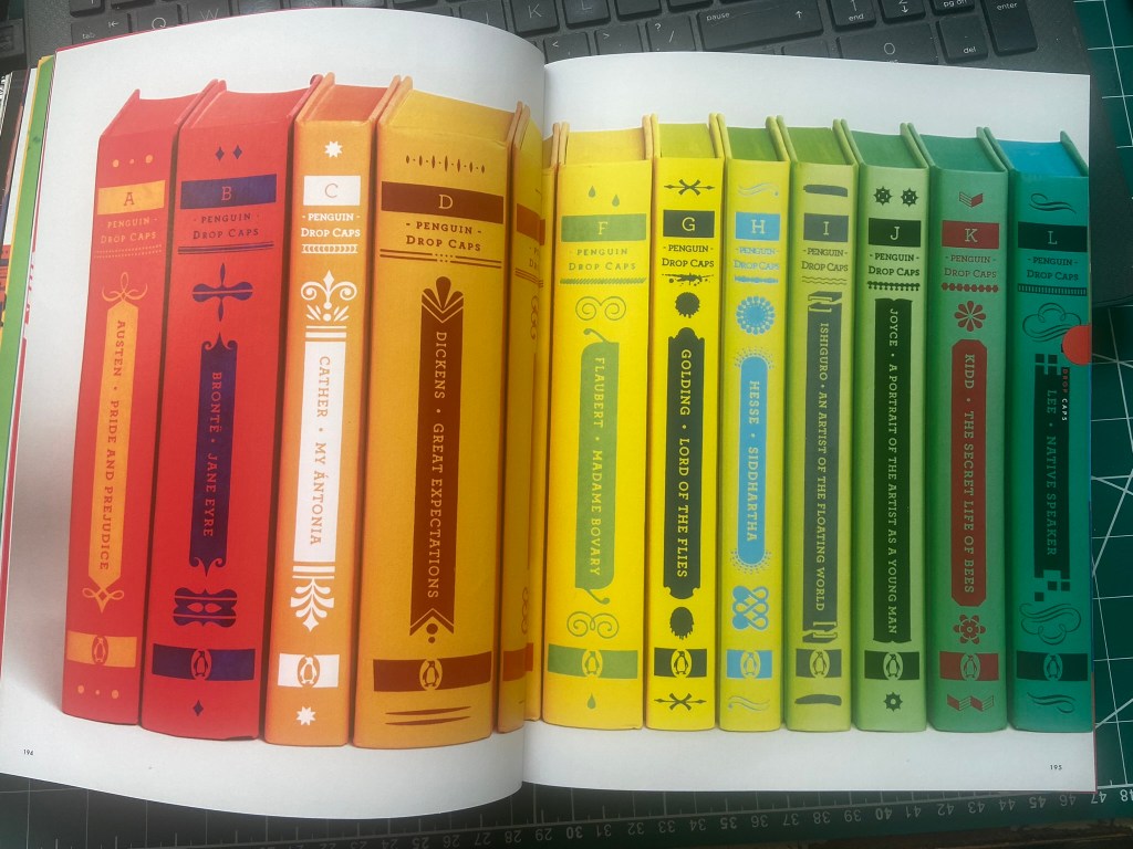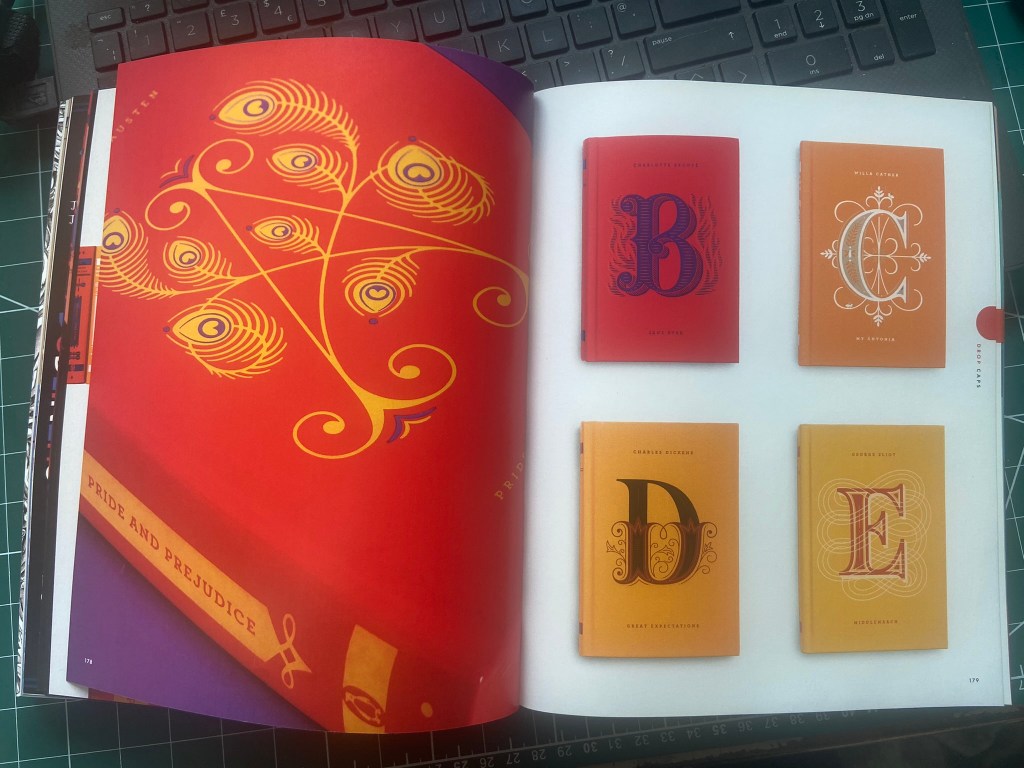 Jessica Hische is a lettering artist that I have followed for some time. I have one of her books and took inspiration from her when I was doing some lettering on a chalkboard.. I also have a book by Penguin on their classic Penguin covers (which is a good read!) and I remembered seeing a series in here that I also researched as part of Assignment 5: Core Concepts. Hische designed a Drop Caps series of books using just her lettering as the covers.