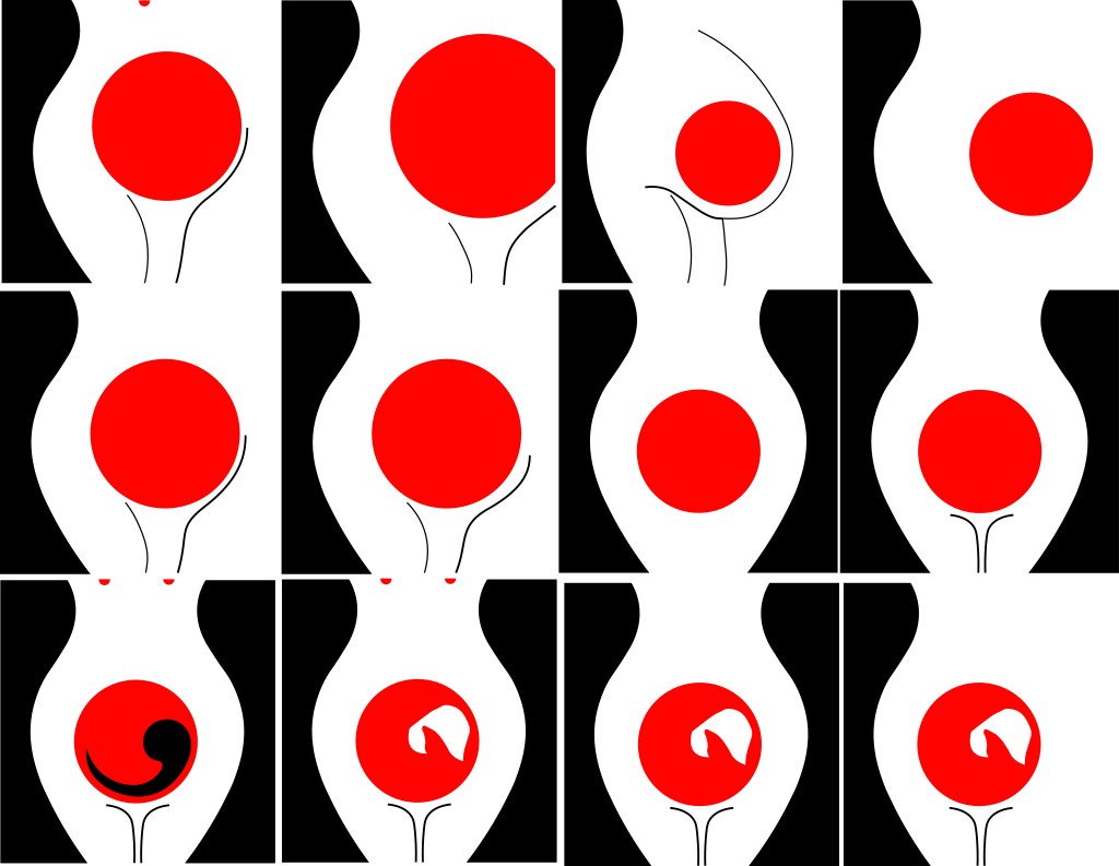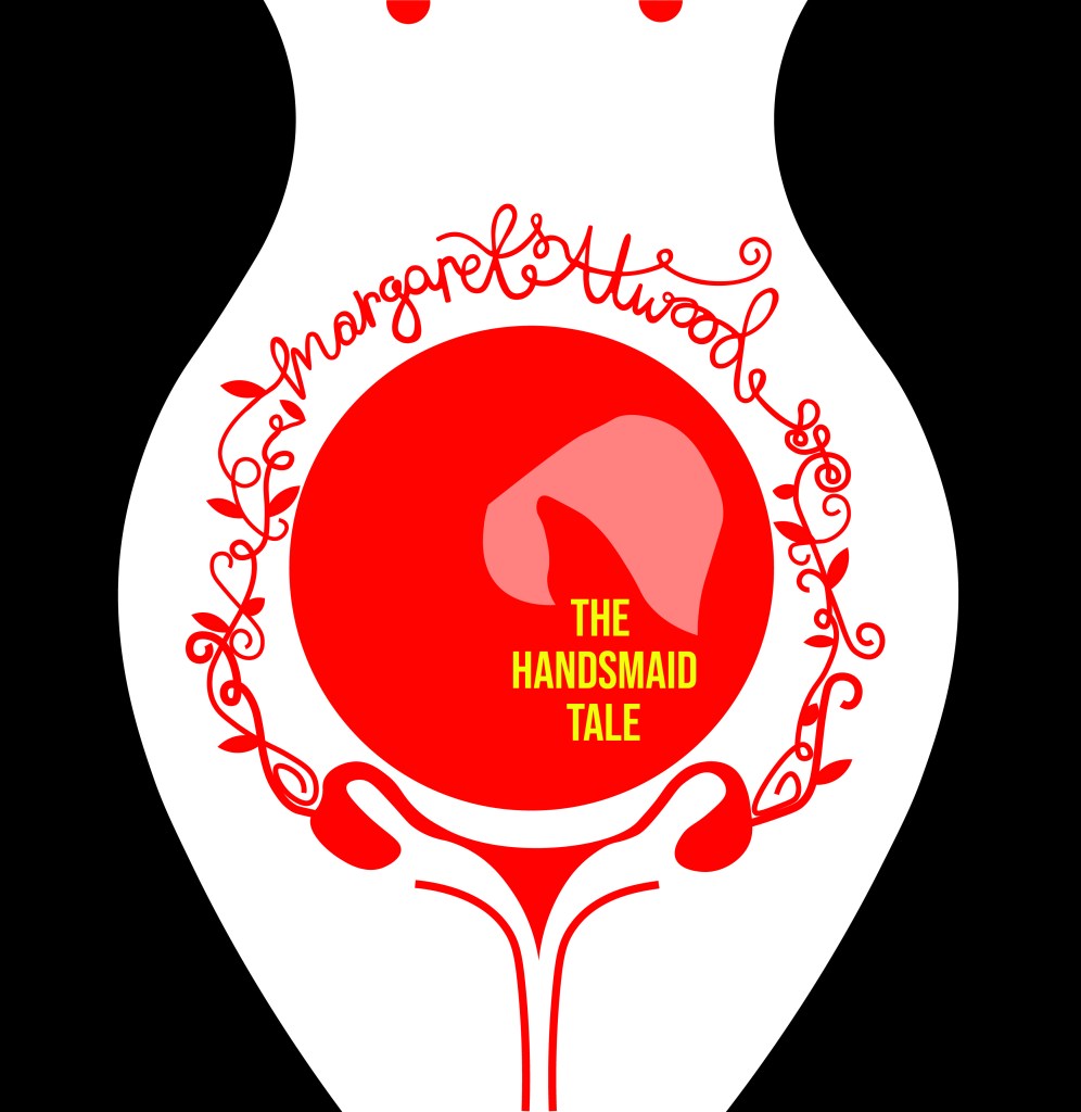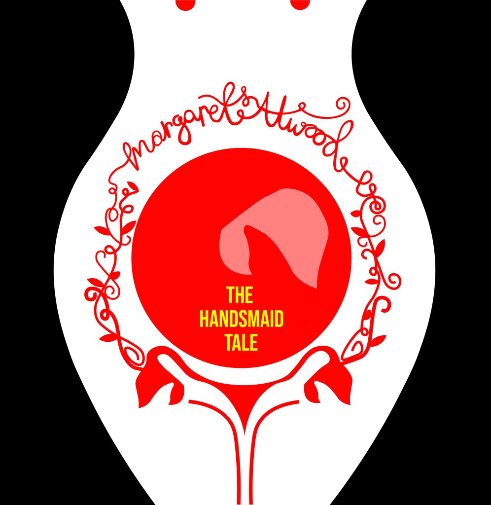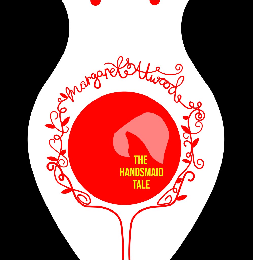 This illustration is from a 2012 copy of The Handmaid’s Tale although it reminds me of something that has come out of a Sci-fi book from the 1960’s/70’s as it feels like it has a futuristic feel to it! The illustration shows a pregnant Handmaid who is looking down at her tummy. When I saw this illustration and looked at her belly, in my head I saw a round, Red circle and I knew this is what I needed to try and use in my designs. I knew I wanted to try and depict the red Handmaid but bring in the fertility element of the storyline.
