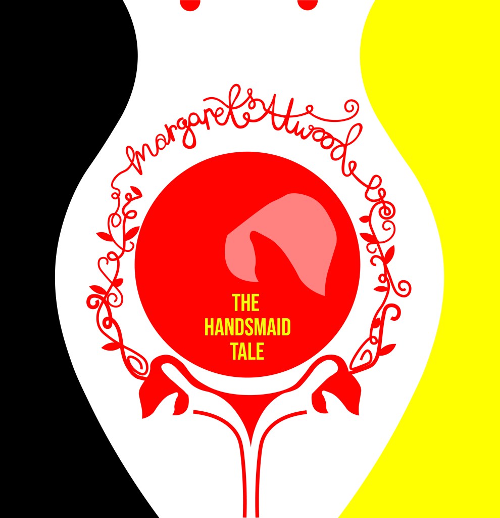 I then developed on the artboard ideas further and experimented with different variations of the typography etc.. I eventually realised that I liked the versions I had done using Didot and with the authors name above in small. I experimented also with colour; the brief specified we were to use no more than 3 colours and the ones I originally experimented with were Red, Yellow and Black. The yellow worked perfectly for the typography as a clash of colour against the rest of the design. It allowed the title to stand out on its own. The red represents the book and the Handmaid and I felt gave it a very communist feel (which actually wouldn’t be too far from the storyline in the book!) Having such simple use of colour really allowed my designs to be striking, clean and really stand out. The colours also contrast each other beautifully.