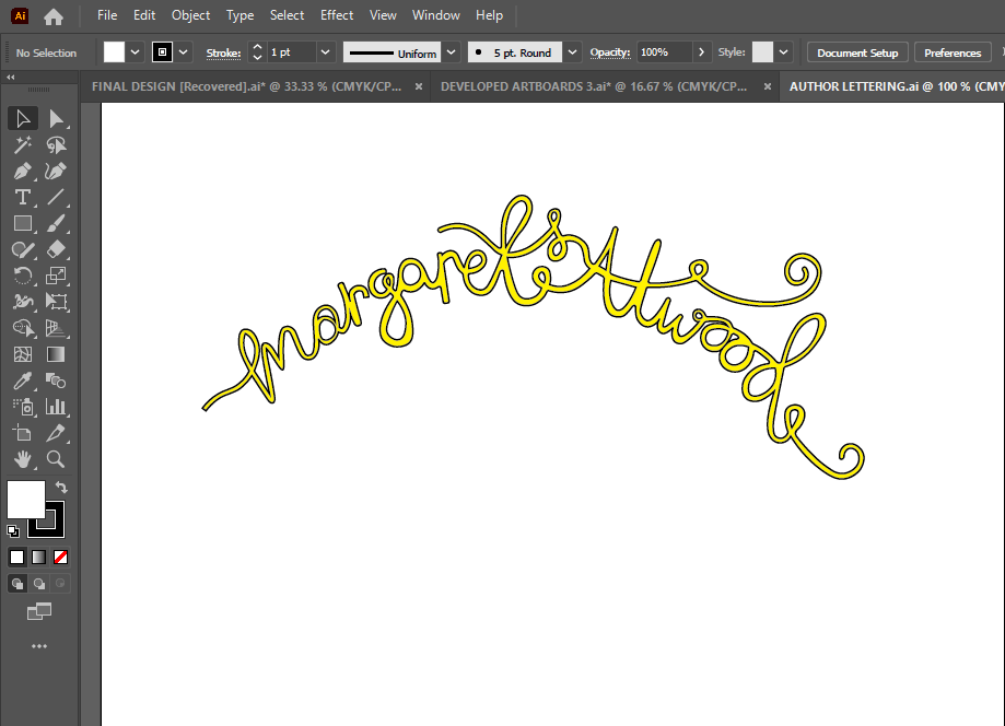 Just for further feedback and reassurance I printed the artboard pages out and asked my colleagues which ones stood out the best to them. They all agreed with the ones I had chosen as my favourites and these were the ones I took forward. I know that I did not have to produce a final design or cover for this assignment but I enjoyed the exercise so much and really liked my design outcome that I wanted to make it into a final piece for my portfolio and my Instagram account. When I was mocking the designs up, I decided that I liked both versions and wanted both to appear in my portfolio and on my Instagram for comparison so I included both. I do however prefer the version without hand lettering and this would be my choice of final design.