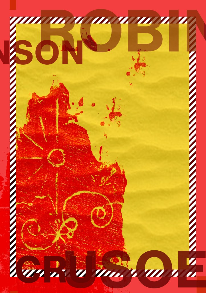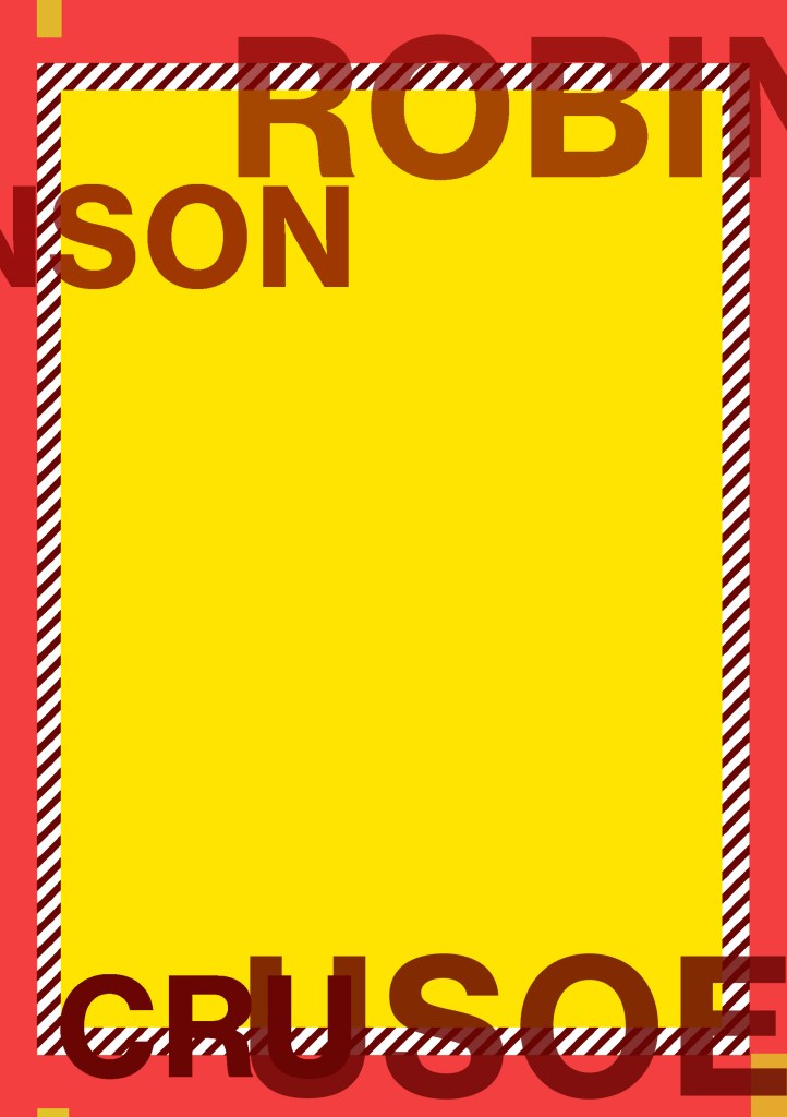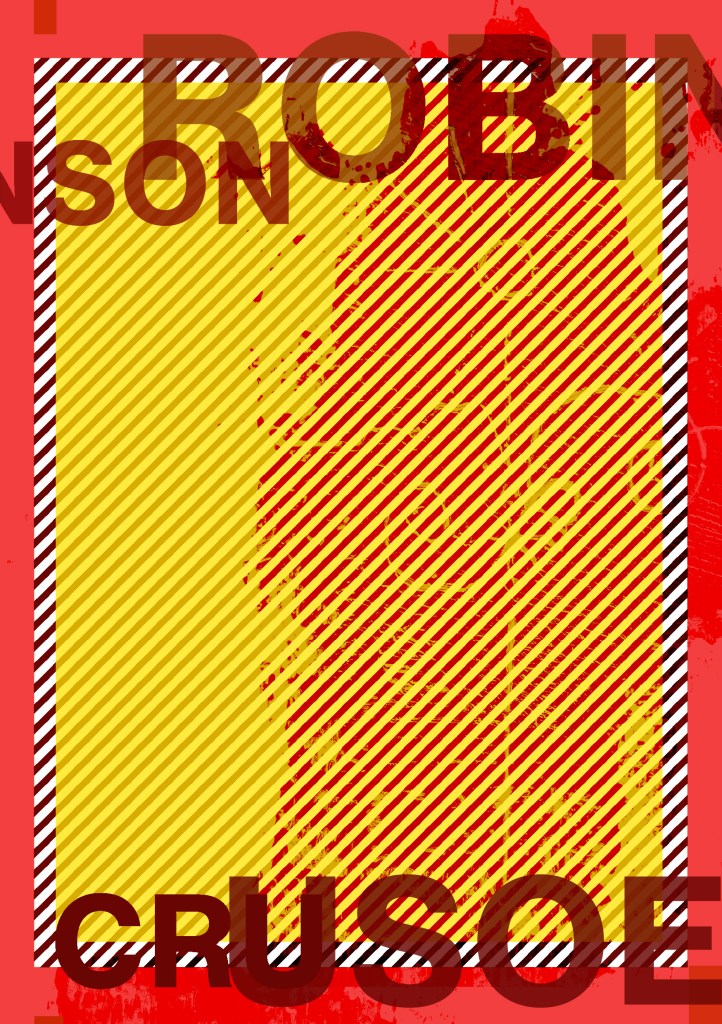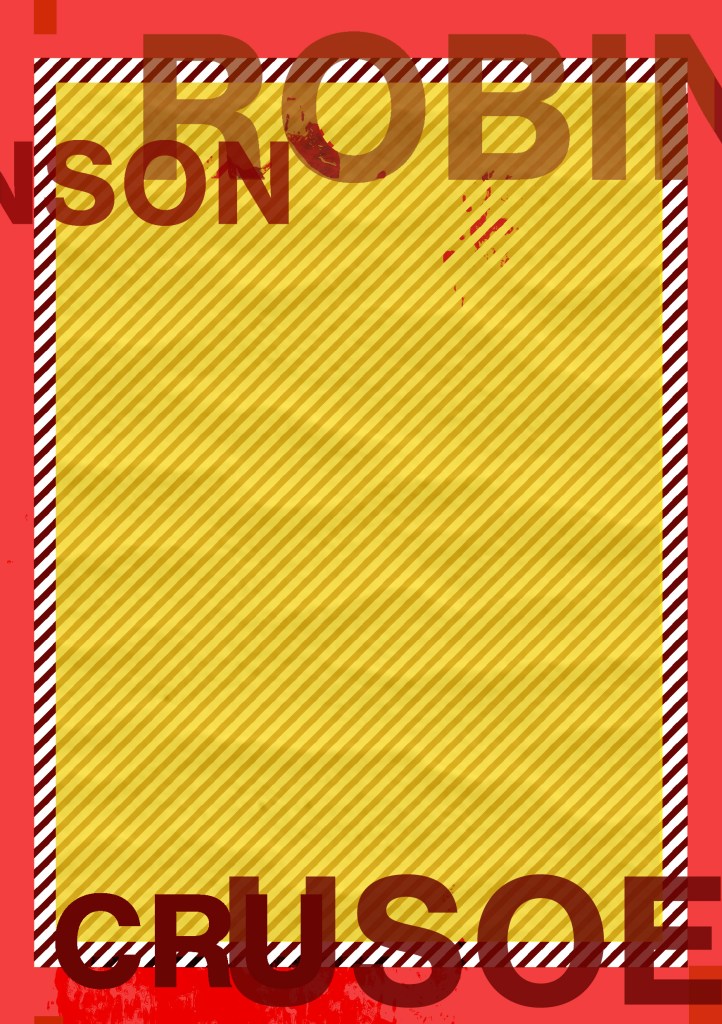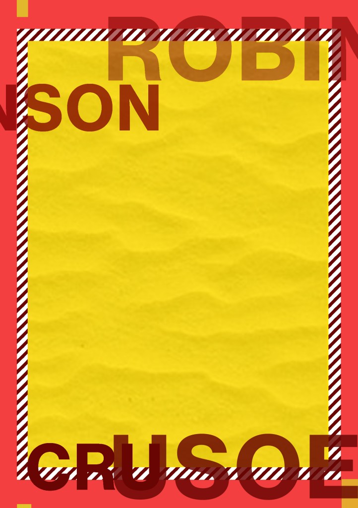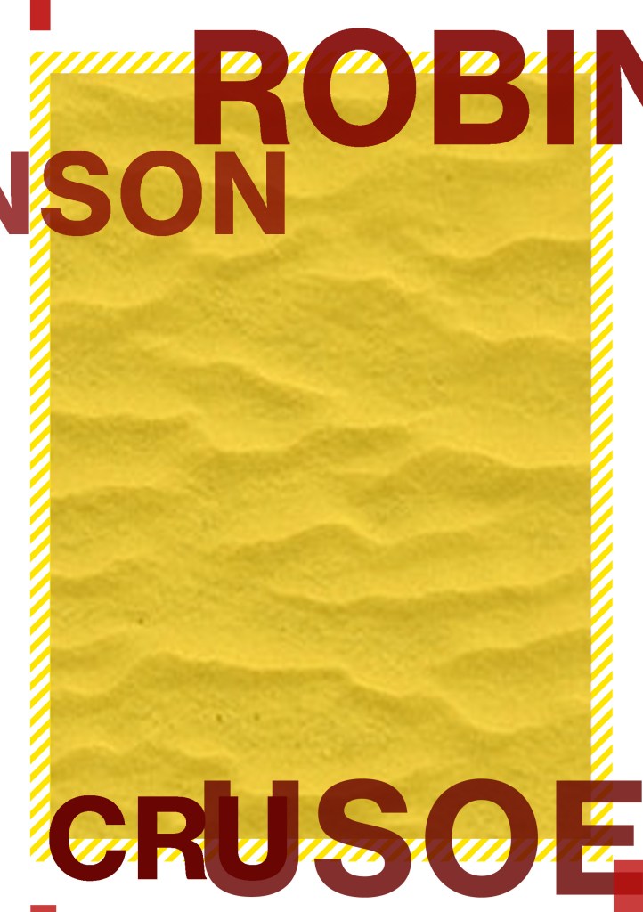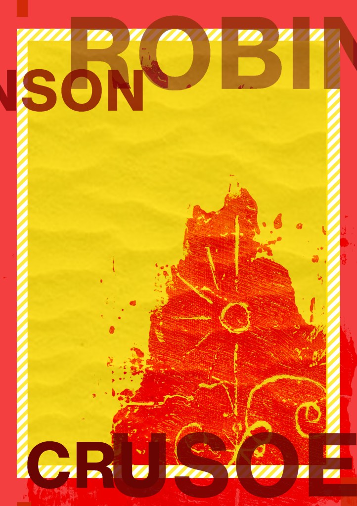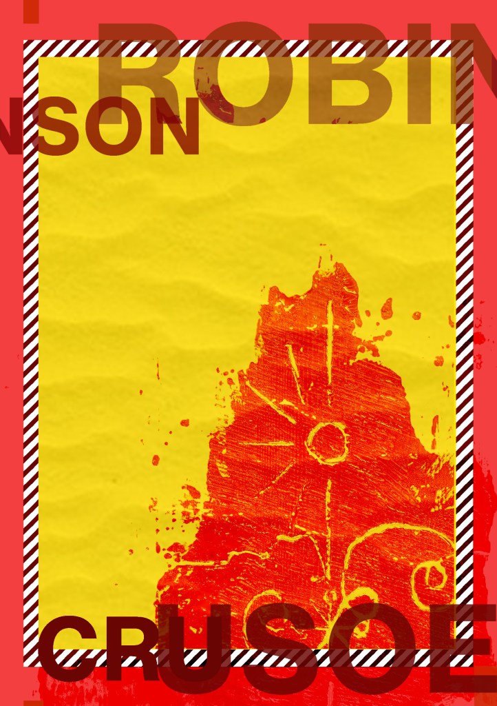 Having had a quick glance at covers they all seemed to be based around the same ideas; the island, sun, sea, sand, parrots, illustrations of Crusoe in raggy clothing on the beach… I did not want to create another cliched cover. I wanted to try and venture outside of the box and design something that wasn’t completely obvious.