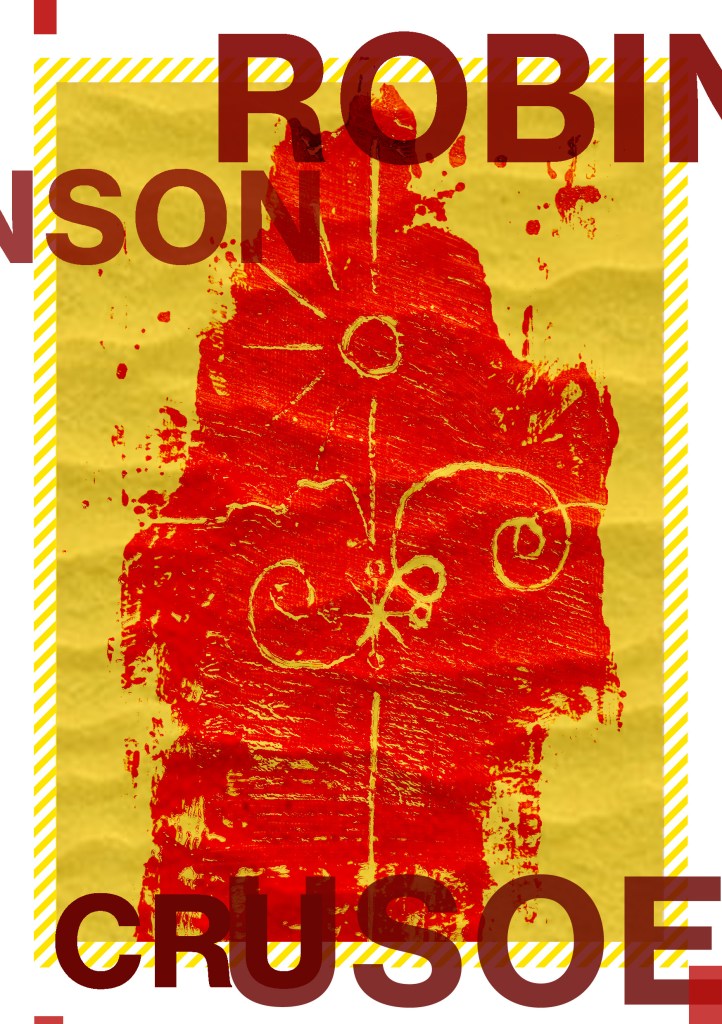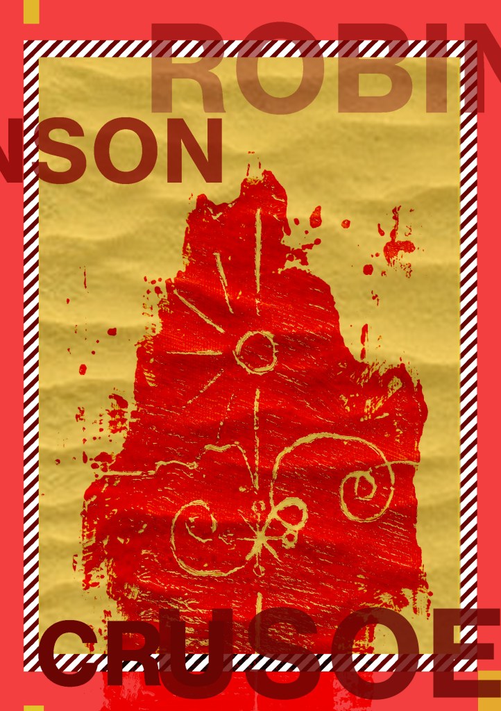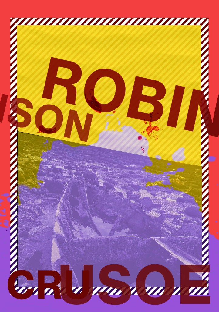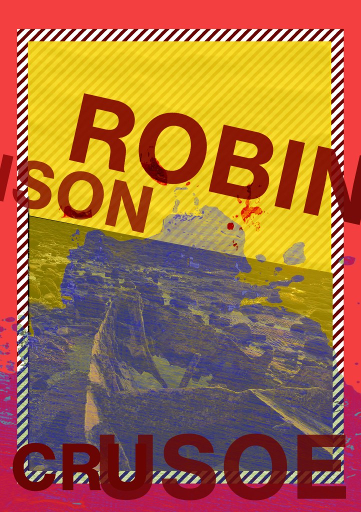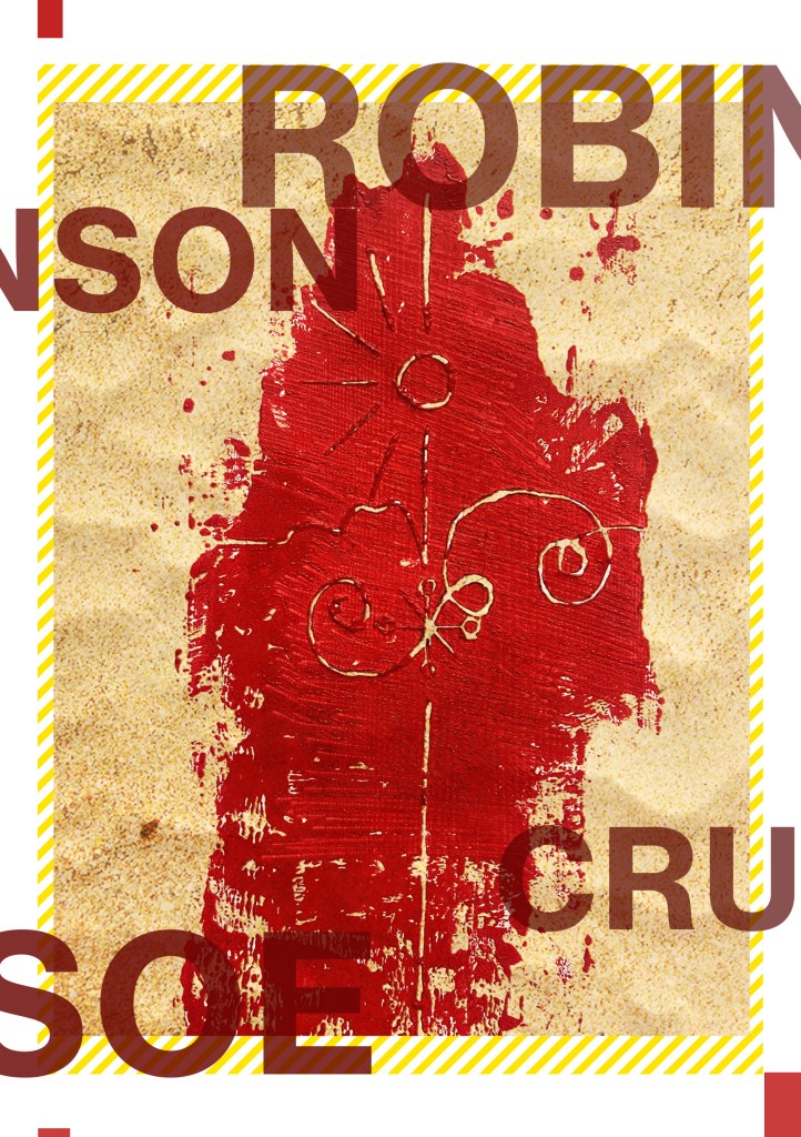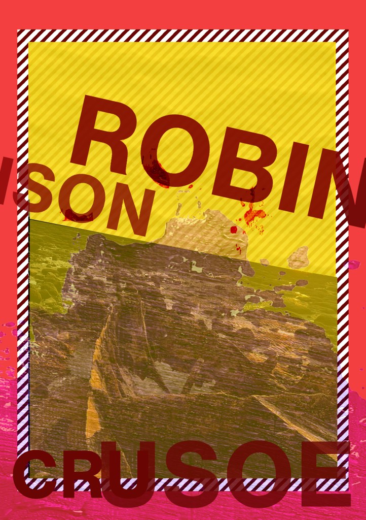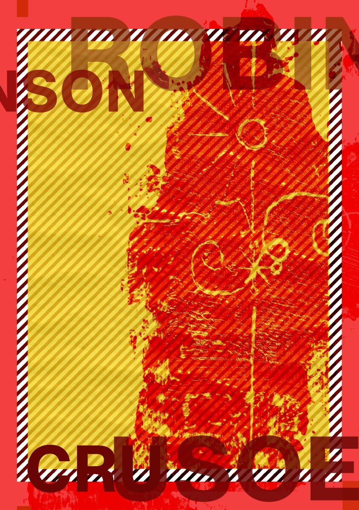 Having had a quick glance at covers they all seemed to be based around the same ideas; the island, sun, sea, sand, parrots, illustrations of Crusoe in raggy clothing on the beach… I did not want to create another cliched cover. I wanted to try and venture outside of the box and design something that wasn’t completely obvious.