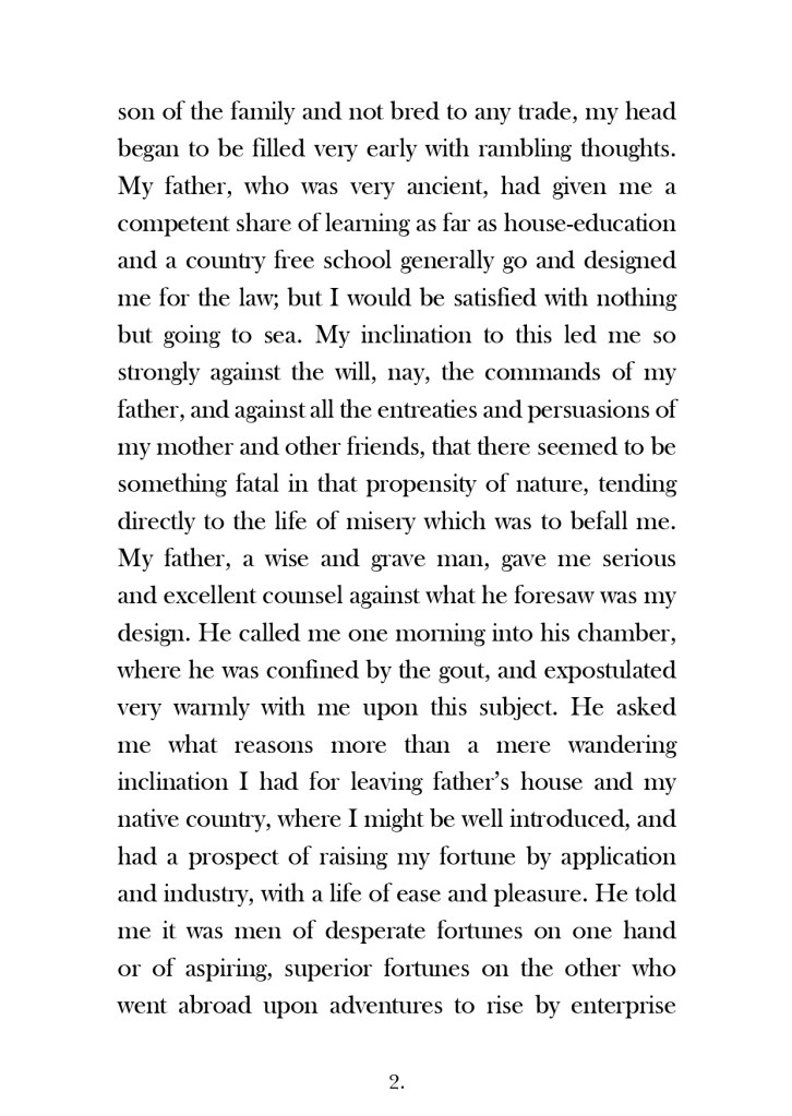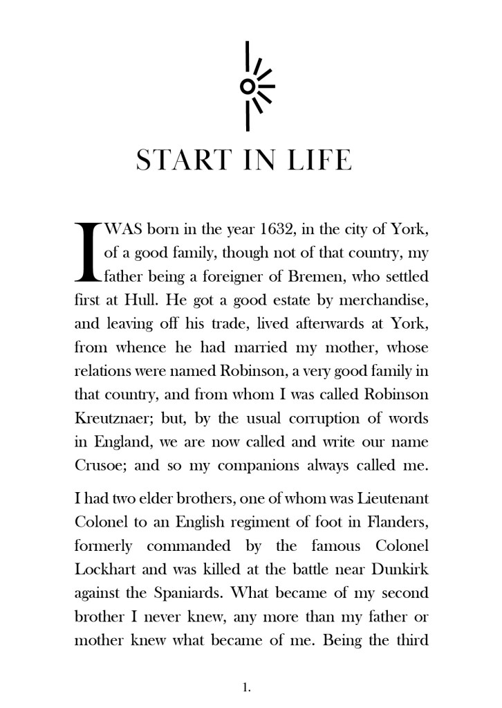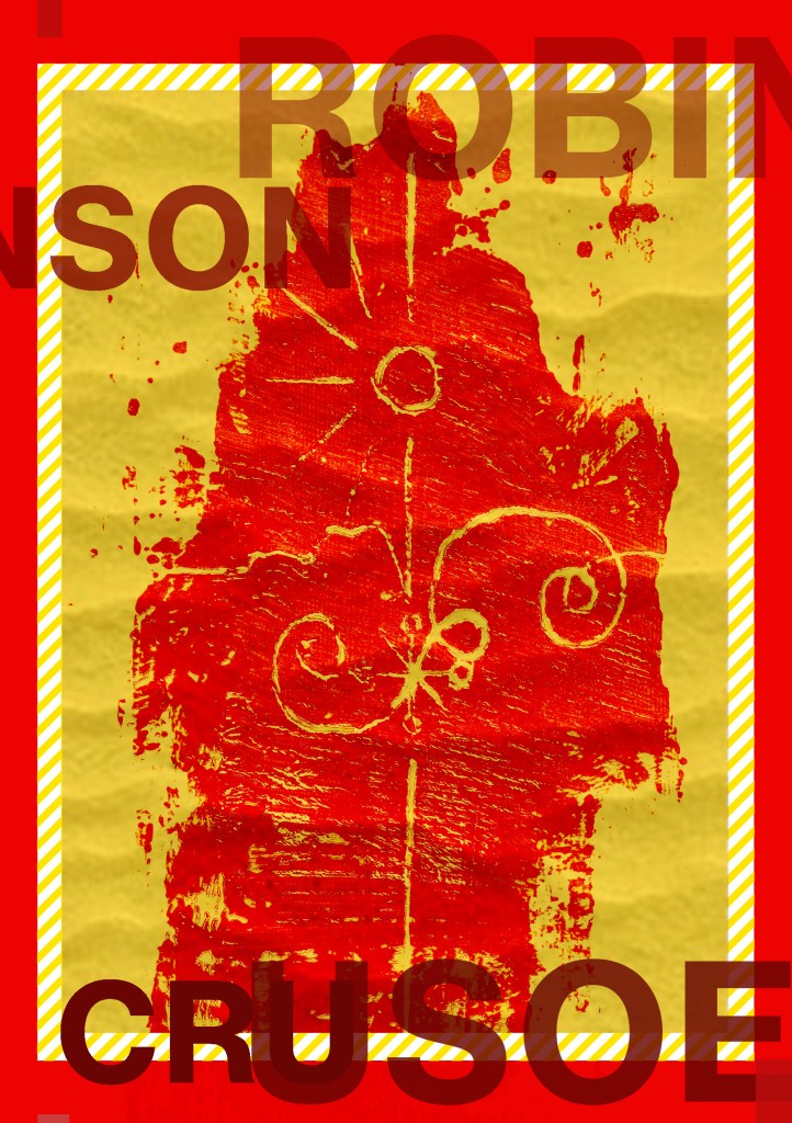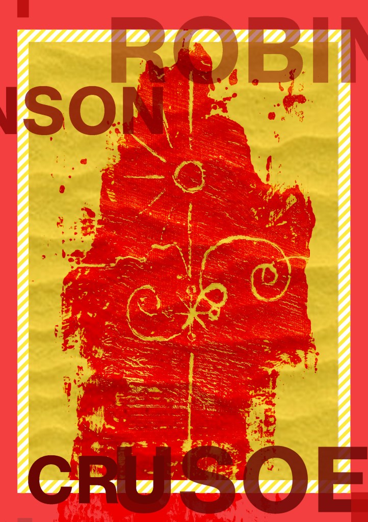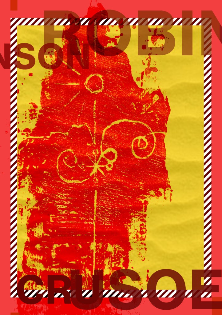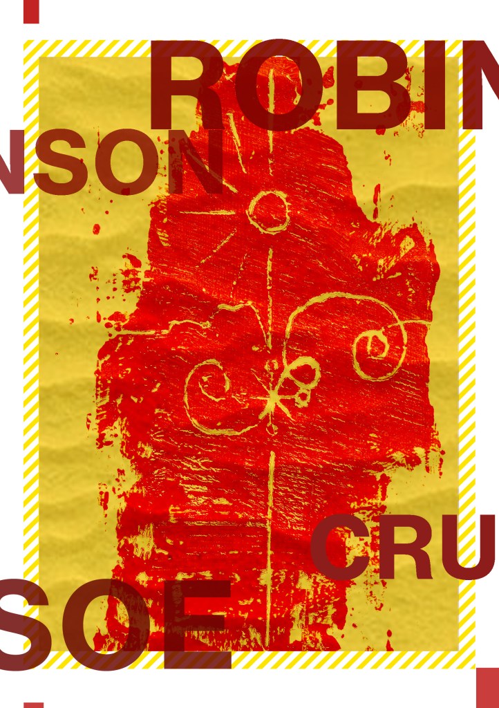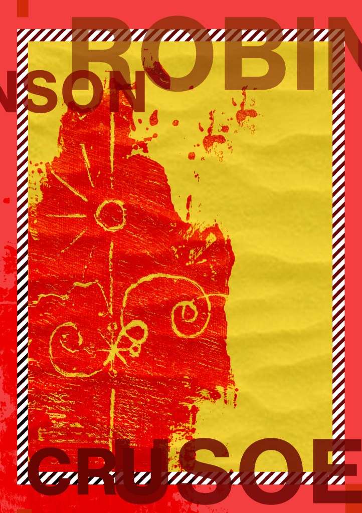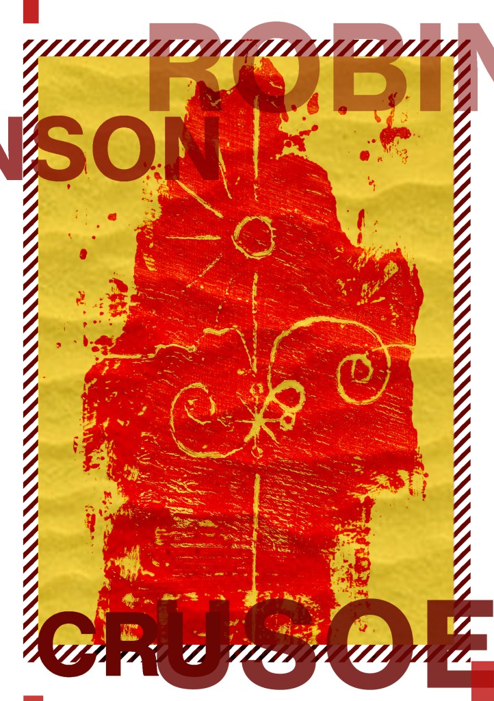 Having had a quick glance at covers they all seemed to be based around the same ideas; the island, sun, sea, sand, parrots, illustrations of Crusoe in raggy clothing on the beach… I did not want to create another cliched cover. I wanted to try and venture outside of the box and design something that wasn’t completely obvious.