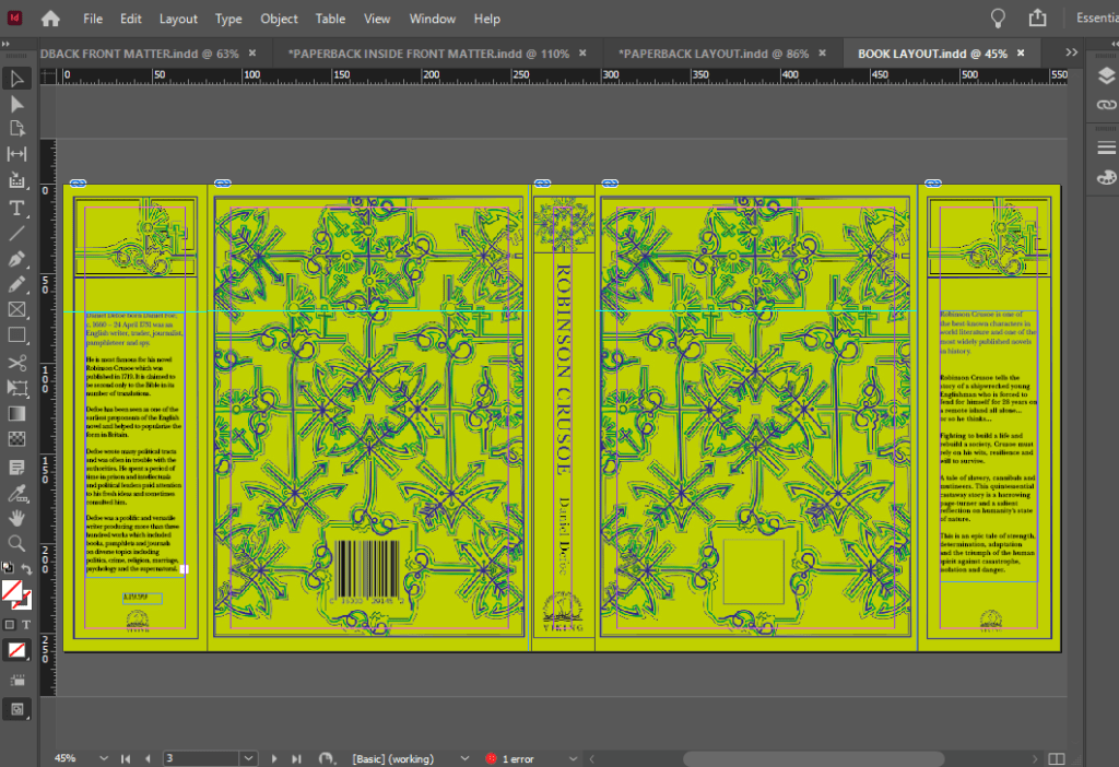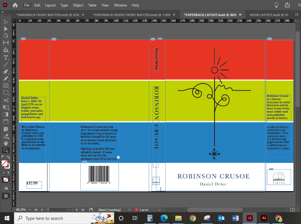 The next step was to create the book cover layout in InDesign.