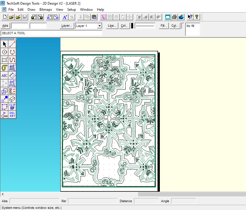 This looked classy and contemporary. I liked it. All the design is was the simple line drawing repeated and rotated at different angles to form a repeat pattern. Now I had the basis for my design I needed to create a path around the design so that I could laser cut it out eventually…