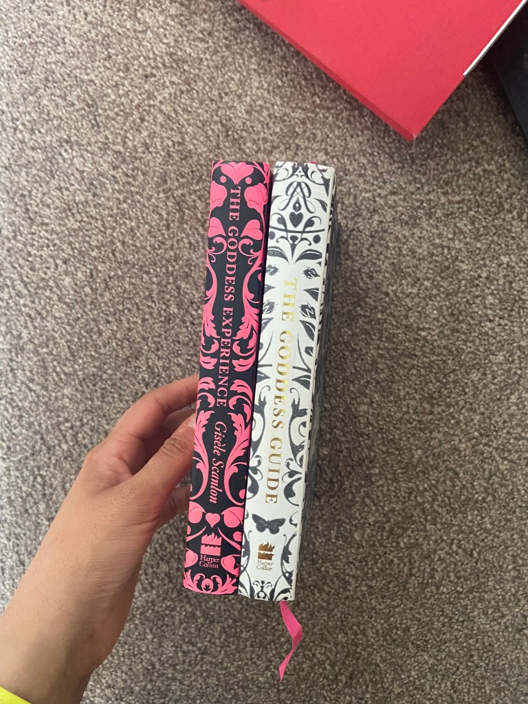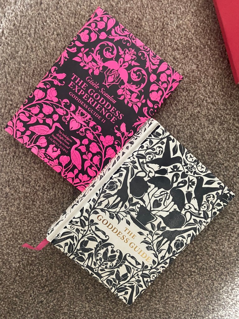 I also found the Goddess Guides on my sisters bookshelf; I totally forgot these existed given the fact that the white copy used to be mine and I bought her the pink copy as a birthday present! These are beautiful covers! The covers have a fuzzy felt feeling! – really soft and luxurious to touch. They also feature a repeat pattern which is where my ideas were leading…