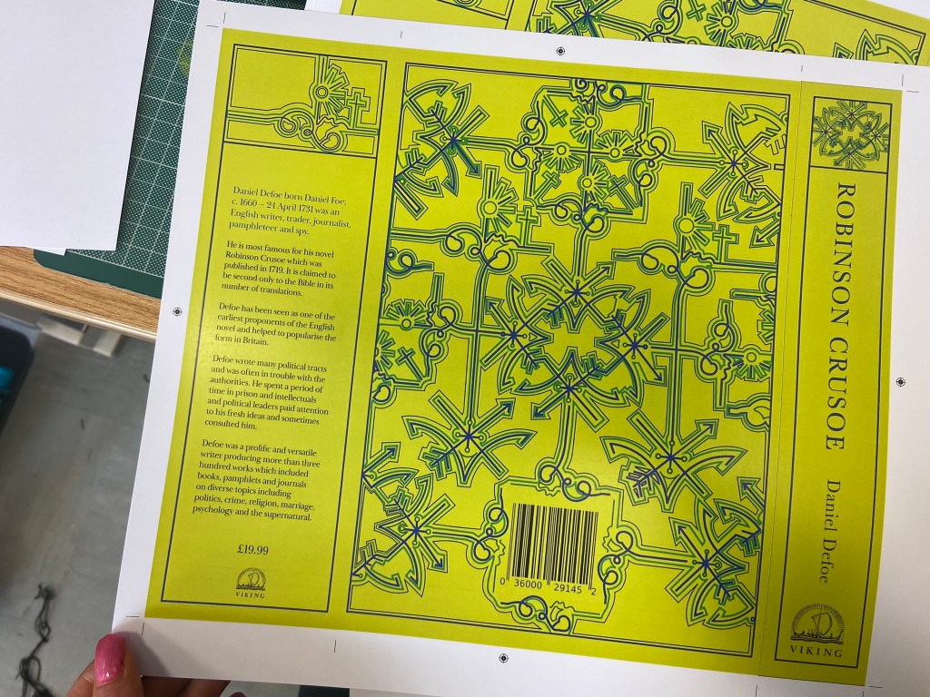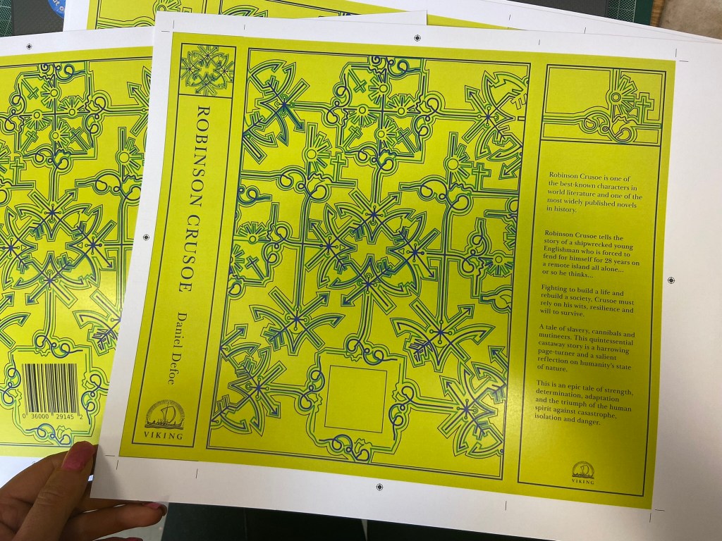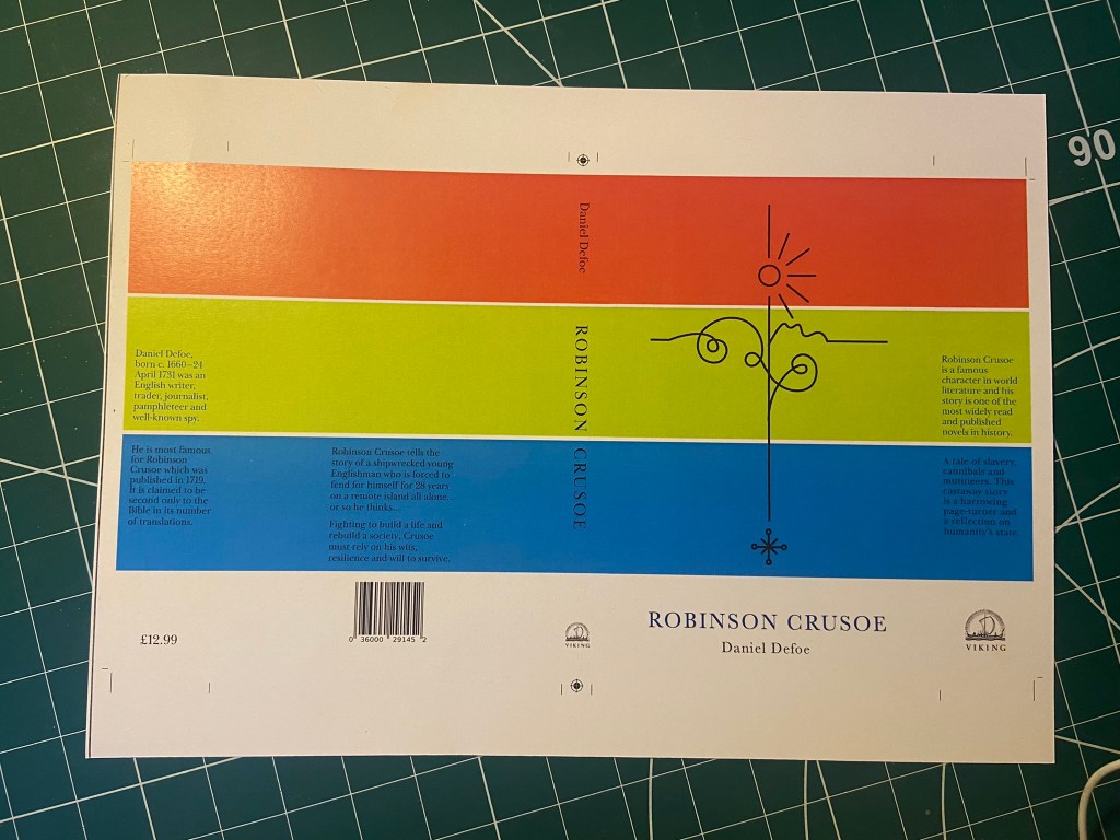 I now know a lot more than I did about Robinson Crusoe!.. and it definitely pushed me out of my comfort zone because Robinson Crusoe is definitely not a cover I would have chosen to design for myself!