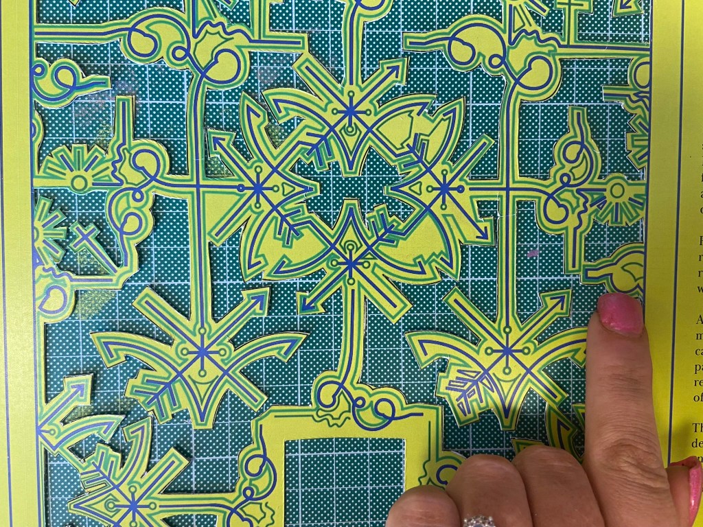 into a pattern is visually pleasing but how does the illustration style and laser-cut technique