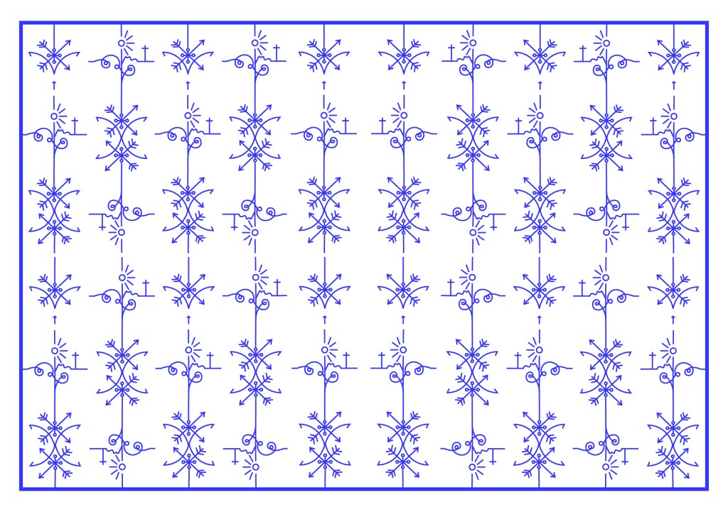I didn’t want to just show a cross on the design though because this would indicate it is a religious book to the unsuspecting reader. From researching Bickford- Smiths covers and Kate Armstrong’s I wanted to mirror something similar in the way they used a repeat pattern to cover the cover. I started sketching ideas around the cross and other elements of the story to see what I could come up with. In the back of my head remembering to strip everything down to its simplest form.