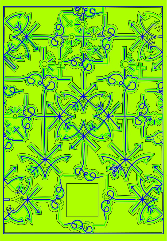 I wanted to take inspiration from both the above designers but for my design to not be too similar. I decided that the original book I was going to use of my Grandmas to mock the design onto was already cloth so I could have a paper cover and try and laser cut a design so that the cloth book showed from underneath the design. This would give a classic, contemporary look. I also have a laser cutter at work so felt that this wouldn’t be too much to achieve! I just had to figure out the design and then try and create a path around it in which it would be cut.