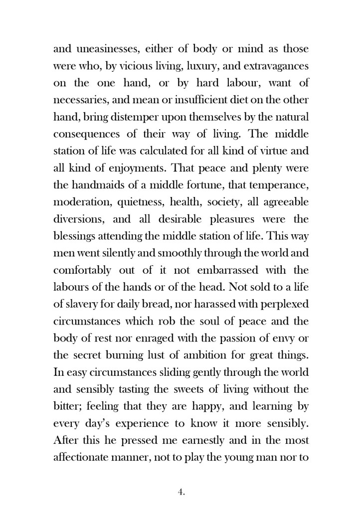 I used the use of the grid to align my text up across the whole layout and to make sure that the hierarchy and design was balanced all the way throughout. On the inside front cover I wrote a short blurb on Robinson Crusoe and what the story was about, on the inside back flap I wrote about Daniel Defoe – this allows for the reader to know the history and historical references behind the author and the story.