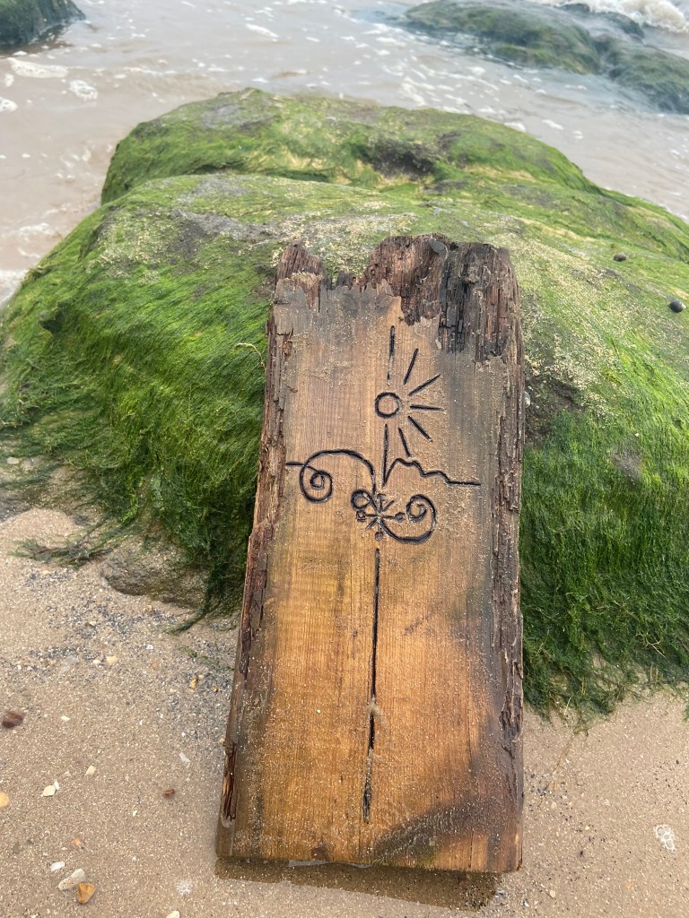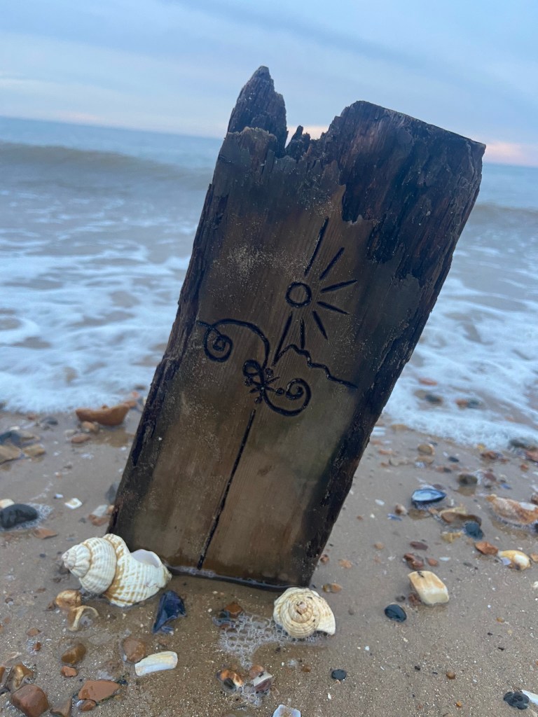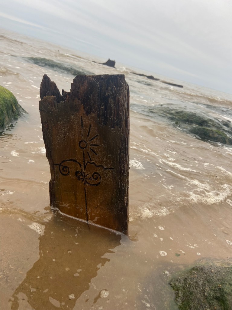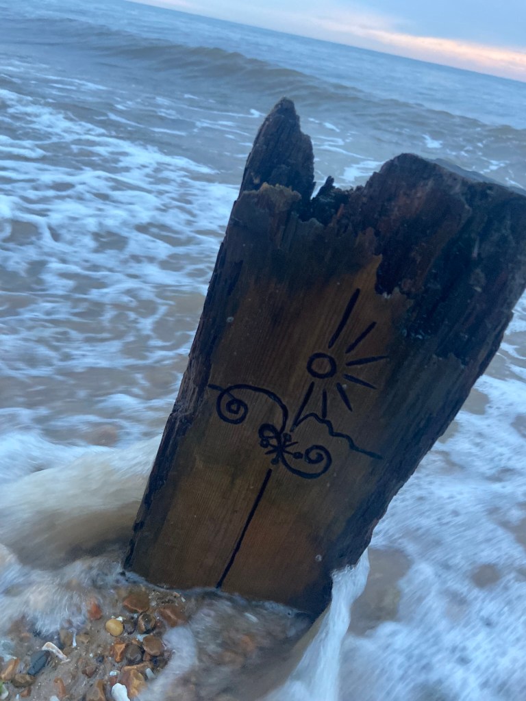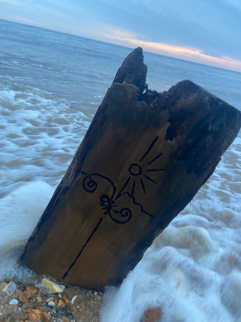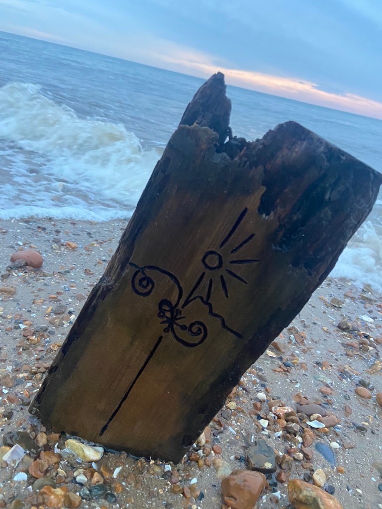 I then couldn’t think of a way to make a piece of wood look attractive on a book cover so I decided to take it for an outing out to the beach and see if I could take some scenic photographs of it!