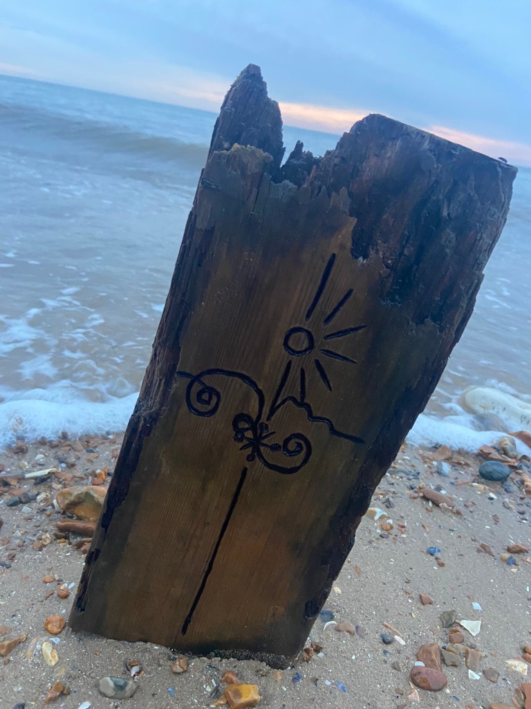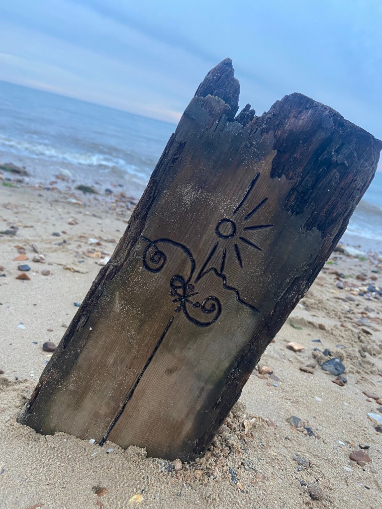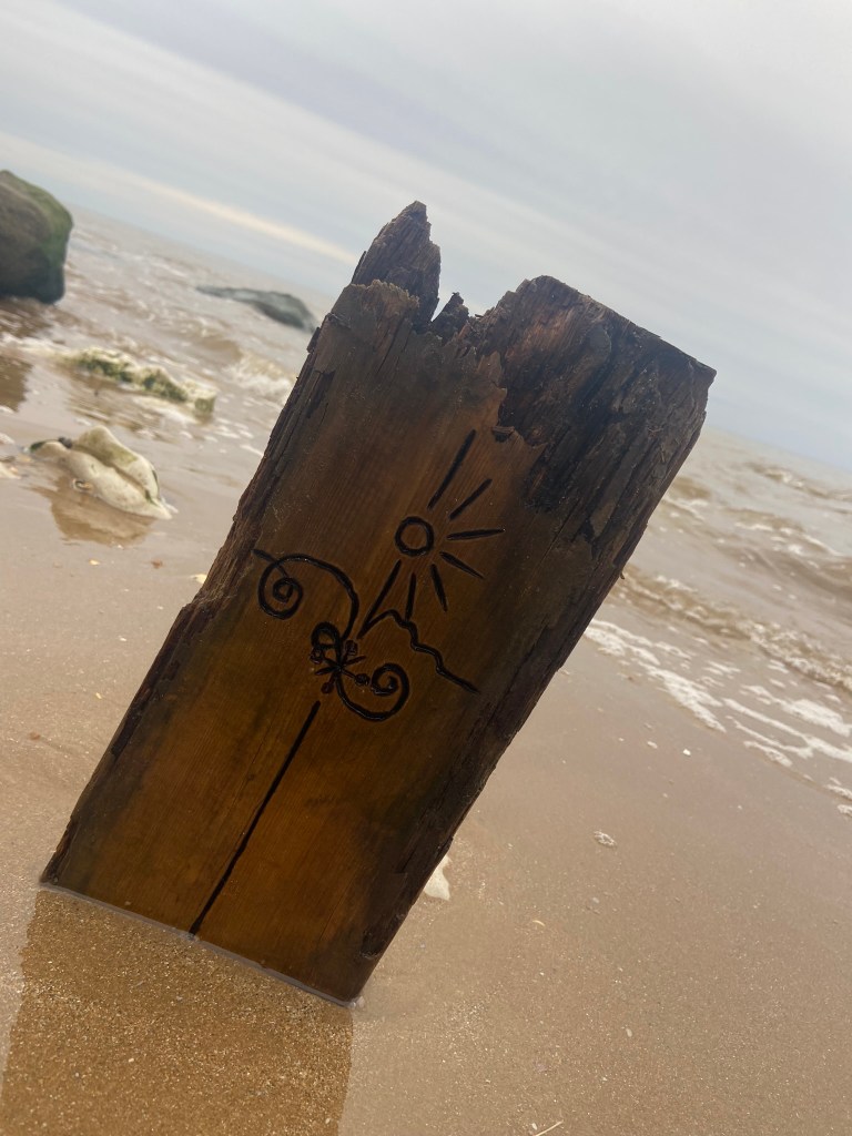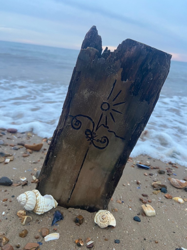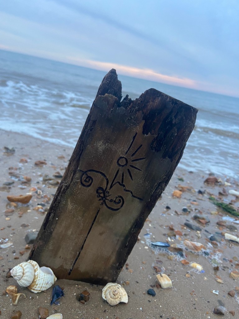 I then couldn’t think of a way to make a piece of wood look attractive on a book cover so I decided to take it for an outing out to the beach and see if I could take some scenic photographs of it!