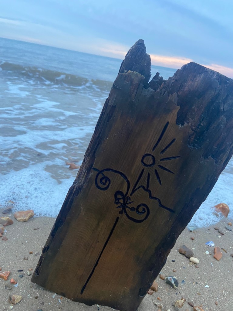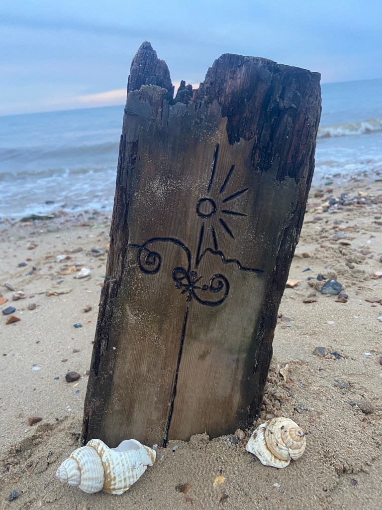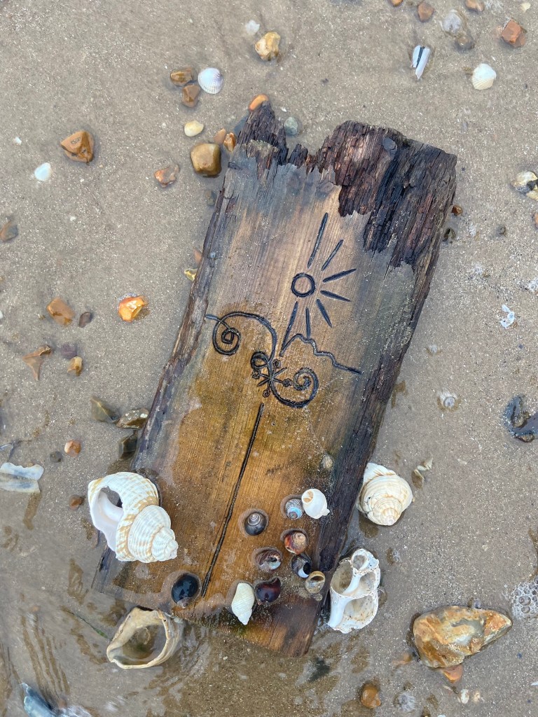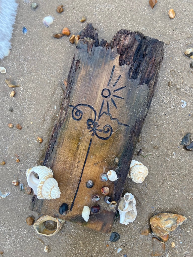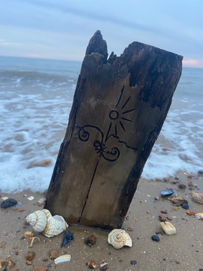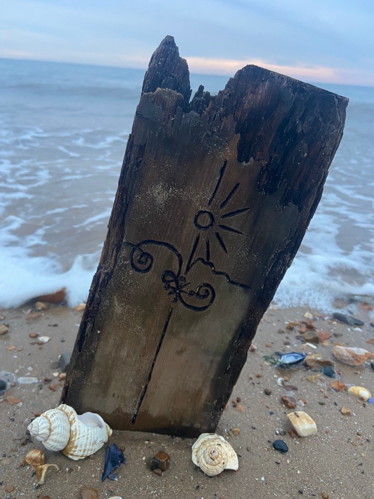 I then couldn’t think of a way to make a piece of wood look attractive on a book cover so I decided to take it for an outing out to the beach and see if I could take some scenic photographs of it!