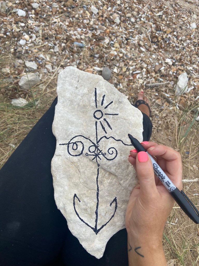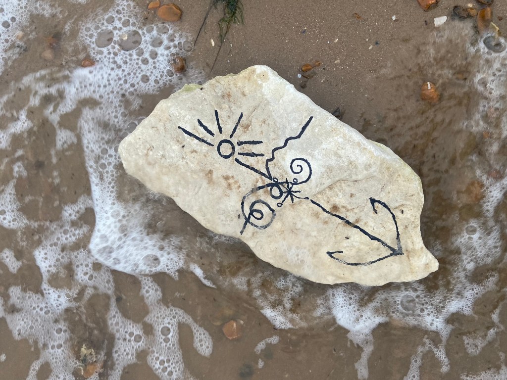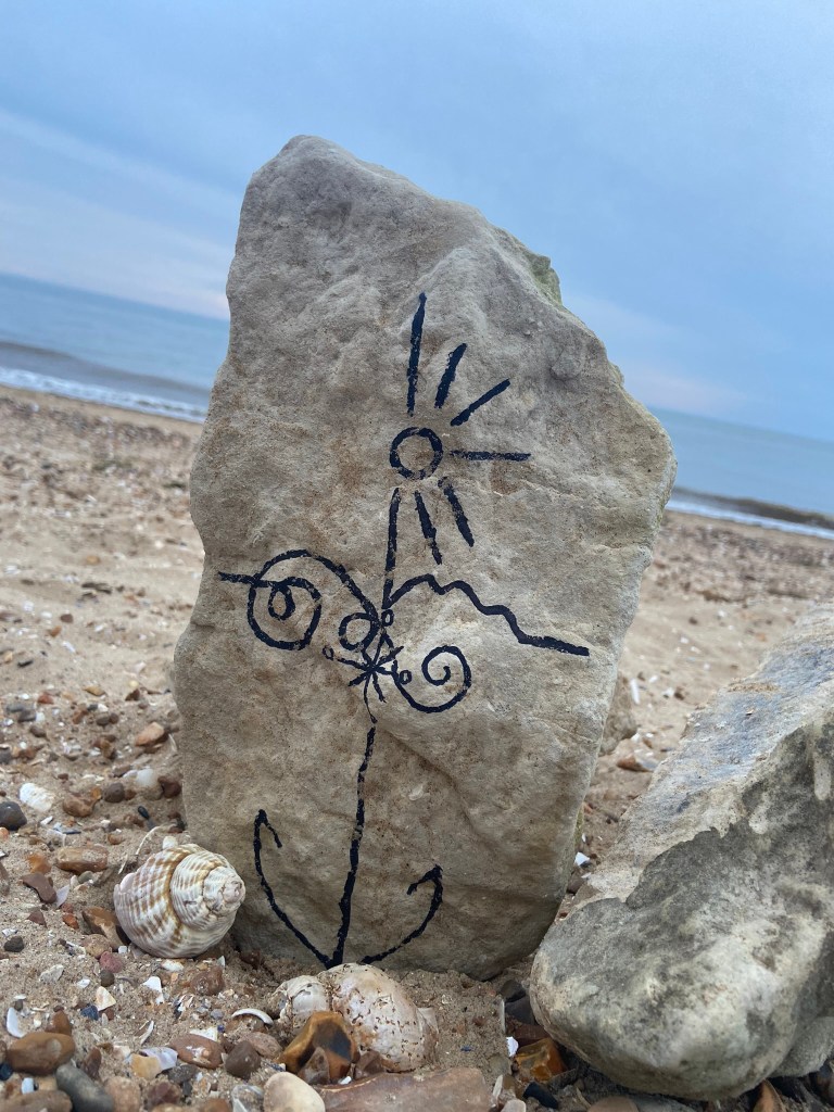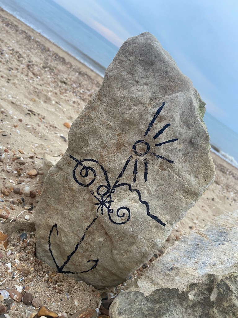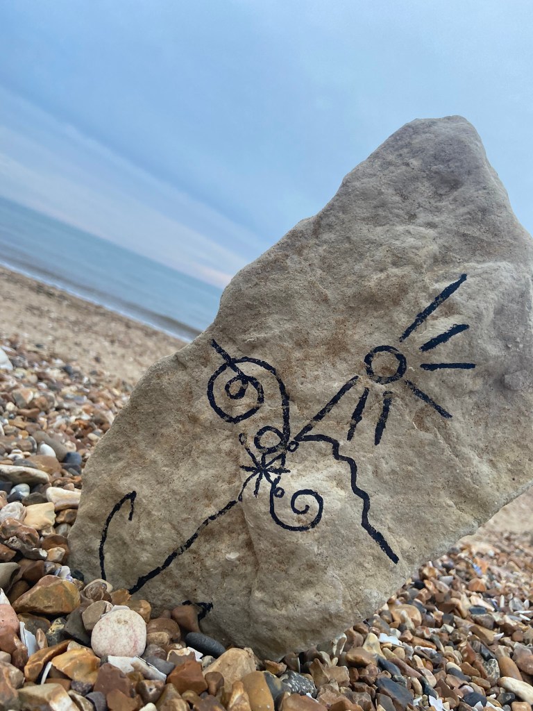 I was just put massively off by the fact that my freehand illustration on the rock looked like a face! All I could see staring back at me was a smiling rock!