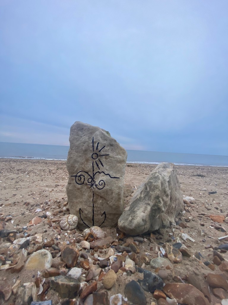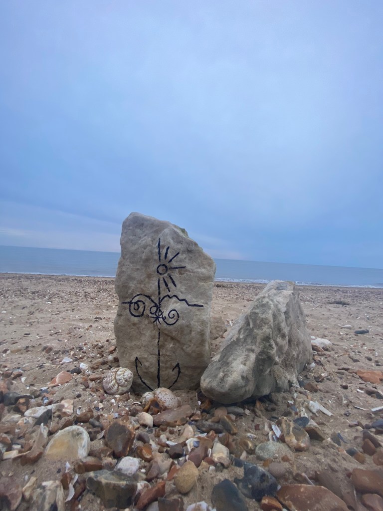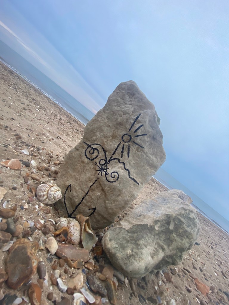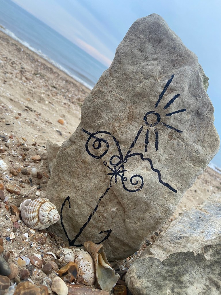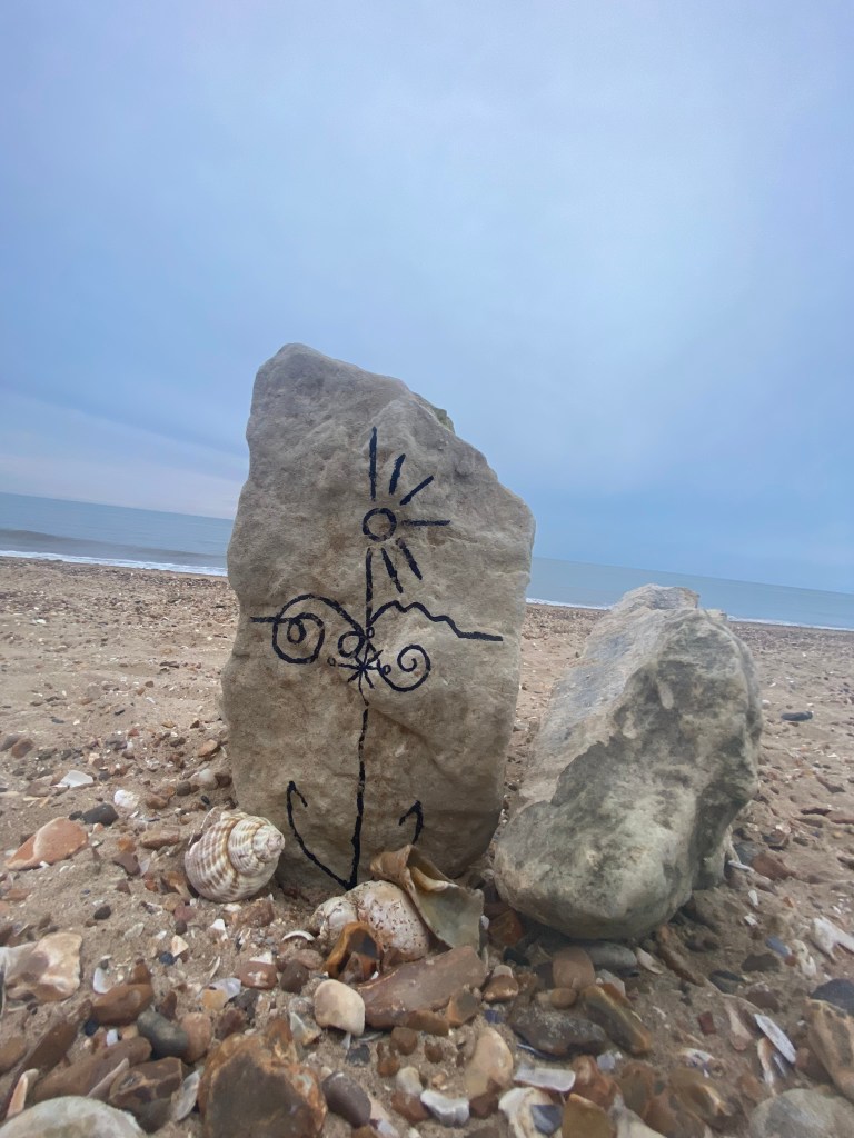 I then decided to photograph from a different view point… taking a sharpie and drawing onto some rocks for effect to see how that might look!